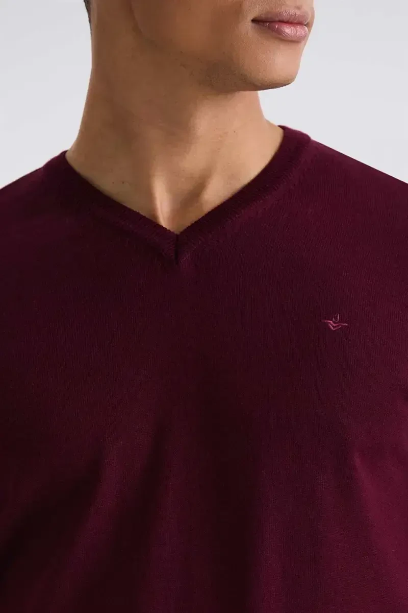 Бордовый свитер Slim Fit с V-образным вырезом: где комфорт сочетается со стилем
