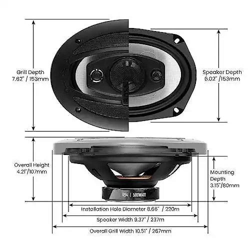BOSS Audio Systems R94 Riot seriyali 6 x 9 dyuymli avtomobil stereo eshik karnaylari bilan avtomobilingiz ovoz tizimini yuqori darajaga ko'taring. Ushbu kuchli karnay 500 vatt maksimal quvvat, 4 tomonlama to'liq diapazonli ovoz va tweeterlar bilan ajoyib tinglash tajribasini taqdim etadi. Koaksial dizayni oson o'rnatish imkonini beradi va ular juft bo'lib sotilganligi sababli avtomobilingizning ikkala eshigiga ham mukammal mos keladi. Poli in'ektsion konusi, 1 dyuymli alyuminiy ovozli g'altak va kauchuk atrofi chuqur baslar va aniq yuqori chastotalar bilan boy va muvozanatli ovoz chiqaradi. Ikki tweeter va bitta Mylar gumbazli o'rta diapazonli karnay har bir notani jonli ravishda eshitishingizni ta'minlaydi. Shtamplangan savat chidamlilik va uzoq umr ko'rishni ta'minlaydi. Bundan tashqari, karnay panjaralari ham kiritilgan. BOSS R94 Riot seriyasi bilan yo'lda musiqa zavqini eng yuqori darajaga ko'taring.