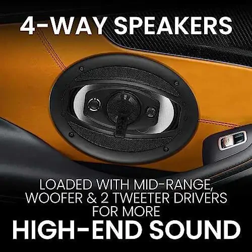 Upgrade your car's sound system with the BOSS Audio Systems R94 Riot Series 6 x 9 Inch Car Stereo Door Speakers. These powerful speakers boast 500 watts of maximum power, 4-way full-range sound, and tweeters for an exceptional listening experience. The coaxial design ensures easy installation, and they're sold in pairs, making them a perfect fit for both doors of your vehicle. The poly injection cone, 1-inch aluminum voice coil, and rubber surround produce a rich and balanced sound with deep bass and crisp highs. Two tweeters and a Mylar dome midrange ensure you hear every note vividly. The stamped basket provides durability and longevity. Plus, speaker grilles are included. Elevate your on-the-road music enjoyment with the BOSS R94 Riot Series.