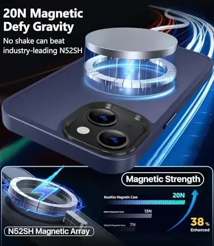 If you are looking for perfect protection and elegance for your iPhone 13, the BossKiss iPhone 13 case is just for you! This case is only compatible with the 6.1-inch iPhone 13 model and is not compatible with any other phone models. The case includes screen and camera protectors, so the most sensitive points of your phone are safe. Compatible with MagSafe, this case securely secures your iPhone 13 to your device, making magnetic wireless charging easier. Enjoy the freedom of charging without removing the case. Thanks to its translucent matte design, it protects the stylish look of your iPhone 13 while preventing the case from getting dirty or yellowing. This minimalist case allows your iPhone logo to be seen slightly. Its matte texture provides a better grip while helping your phone gain a more advanced look. Its robust composite PC back panel, 4 corner shock-absorbing airbags, side-aligned shock-absorbing straps and non-slip elastic TPU edges offer excellent drop resistance. It is resistant to more than 5000 drop impacts (10 feet drop test). The BossKiss iPhone 13 case is the ideal choice for those who do not want to compromise on style while protecting their phone against the risks of daily use. While adding a privileged atmosphere to your phone with its deep blue color, it gives you confidence with its long-lasting structure. This case is not just a protector for your iPhone 13, but also a style statement.