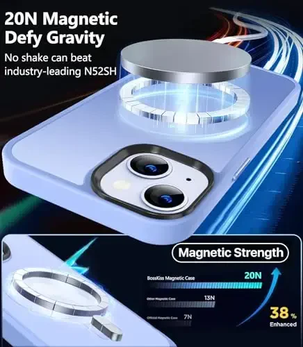 BossKiss iPhone 13 g‘ilofi bilan telefoningizni nafislik va xavfsizlik bilan birlashtiring! Ushbu maxsus dizayndagi g‘ilof faqat 6,1 dyuymli iPhone 13 modeli bilan mos keladi va boshqa hech qanday telefon modeliga mos kelmaydi. G‘ilof, shuningdek, ekran va kamera himoyachilarini o‘z ichiga oladi, shuning uchun telefoningizning eng nozik nuqtalarini tirnalish va zarbalardan himoya qiladi.Mag-Safe mos dizayni tufayli siz iPhone 13-ni g‘ilofni yechmasdan magnit simsiz zaryadlovchi qurilmalariga osongina ulashingiz va zaryadlashingiz mumkin. Ichki magnit massivlar telefoningizni qurilmaga xavfsiz tarzda biriktirilishini ta’minlaydi va simsiz zaryadlash tajribangizni muammosiz qiladi.Yarim shaffof mat dizayni iPhone 13-ga minimalist va zamonaviy ko‘rinish beradi. G‘ilofning orqa yuzasi ifloslanish va sarg‘ayishning oldini oladi, iPhone logotipingizning yengil ko‘rinishini ta’minlaydi. Mat to‘qimasi yaxshiroq ushlab turishni ta’minlaydi va telefoningizni yanada zamonaviy qiladi. Moviy rang varianti bilan o‘z uslubingizni aks ettiring.Yuqori darajadagi yiqilishga chidamlilik xususiyatlari tufayli BossKiss g‘ilofi iPhone 13-ni kundalik foydalanish qiyinchiliklaridan himoya qiladi. Mustahkam kompozit PC orqa paneli, 4 burchak zarbani yutuvchi havo cho‘ntagi, yon tomonga tekislangan zarbani yutuvchi tasmalar va sirpanmaydigan elastik TPU qirralari bilan jihozlangan. 5000 dan ortiq tushish ta’siriga chidamli va 10 fut balandlikdan tushish sinovlaridan muvaffaqiyatli o‘tdi. Bu telefoningizni tasodifiy tushishlarda shikastlanishdan saqlaydi.BossKiss sifatida biz mahsulotimiz sifatiga ishonamiz va shu sababli umrbod almashtirish kafolatini taklif qilamiz. Agar sizda biron bir savol yoki tashvish bo‘lsa, biz bilan bog‘lanishdan tortinmang. 7/24 professional qo‘llab-quvvatlash jamoamiz sizga tez orada qoniqarli javob berishga tayyor. iPhone 13 uchun mukammal himoya va nafislikni birgalikda taqdim etuvchi BossKiss g‘ilofi bilan telefoningizni xavfsiz saqlang va uslubingizni aks ettiring!