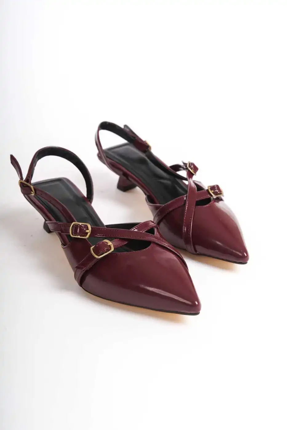 Идеальный выбор для стильного и элегантного образа! Туфли на каблуке 3 см из бордовой лаковой кожи с деталями в виде ремешка с пряжкой придают очаровательную элегантность. Добавьте женственности своему стилю с помощью варианта цвета Cherry Red. Эти туфли, которые вы можете легко носить в любой обстановке, от повседневных нарядов до вечерних приемов, сочетают в себе комфорт и элегантность с каждым шагом.