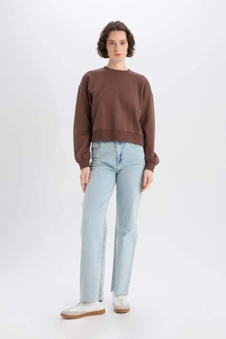 Boxy Fit Bisiklet Yaka Basic Düz Kalın Sweatshirt - Kahve, Sonbahar ve Kış aylarının vazgeçilmez parçası olmaya aday! Örme kumaştan üretilmiş bu şık sweatshirt, hem rahatlığı hem de modern görünümü bir araya getiriyor. Kahve rengi, her kombine kolayca uyum sağlayarak gardırobunuzun kurtarıcısı olacak. Boxy fit kesimi sayesinde üzerinize tam oturmayan, hareket özgürlüğünüzü kısıtlamayan bir yapıya sahiptir. Kalın sweatshirt kumaşı, soğuk havalarda sizi sıcacık tutarken, bisiklet yaka detayı ise tarzınıza farklı bir dokunuş katıyor.Modelin ölçüleri S beden için 1,79 cm boyunda ve 81/62/91 ölçülerindedir. Numune bedeni S olan bu sweatshirt'ün kumaş içeriği %53 pamuk, %6 viskoz ve %41 poliesterden oluşmaktadır. Bu özel karışım, hem dayanıklılığı artırır hem de sweatshirt'e yumuşak bir dokunuş kazandırır.Boxy fit kalıbı, her vücut tipine uyum sağlayarak konforlu bir kullanım sunar. Ürünün omuzdan arka boy ölçüleri bedenlere göre farklılık göstermektedir: XS beden için 54 cm, S beden için 55 cm, M beden için 56 cm, L beden için 57 cm ve XL beden için 58 cm'dir. Bu ölçüler, size en uygun bedeni seçmenize yardımcı olacaktır.Kahve rengi, özellikle sonbahar ve kış aylarında doğal tonlarla mükemmel bir uyum sağlar. Bu sweatshirt'ü jeanler, taytlar veya eteklerle kombinleyerek farklı stiller yaratabilirsiniz. İster günlük kullanımda, ister özel bir etkinlikte şıklığınızı koruyabilirsiniz.Ürünün üretiminde geri dönüştürülmüş kumaş kontrolü yapılmıştır, bu da çevreye duyarlı bir seçim yapmanızı sağlar. Bu sweatshirt, hem şık görünmek hem de çevreye katkıda bulunmak isteyenler için ideal bir seçenektir. Üstelik, ürünü evinizde deneyebilir ve bedeni olmazsa size en yakın mağazamızdan ücretsiz olarak değiştirebilirsiniz. Bu sayede, alışveriş deneyiminizi daha güvenli ve keyifli hale getirebilirsiniz.Kahve Basic Düz sweatshirt, gardırobunuzun olmazsa olmazlarından biri olacak. Hem rahatlığı hem de şıklığı bir arada sunan bu parça ile her zaman stil sahibi görünebilirsiniz. Şimdi sipariş verin ve konforun tadını çıkarın!