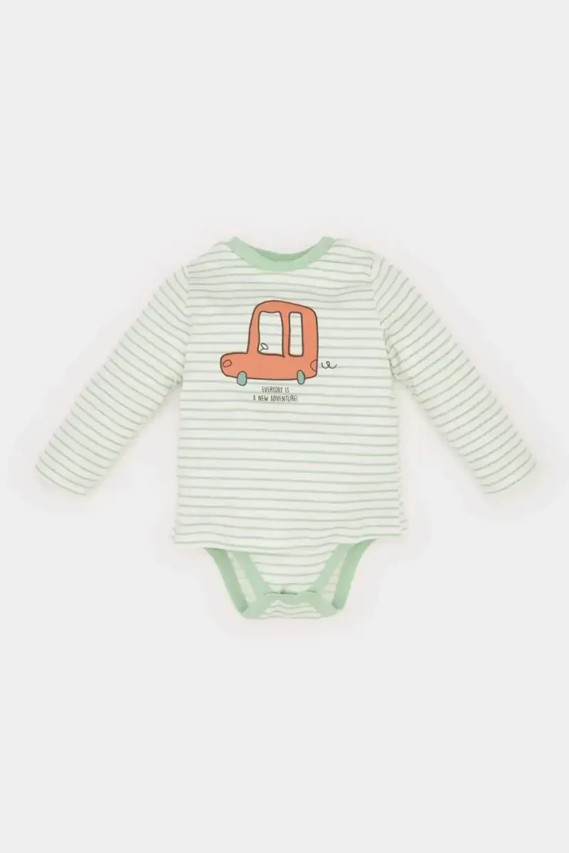 Meet the DeFacto Boys Newborn Bicycle Collar Vehicle Printed Long-Sleeved Snap Bodysuit E2456A525SP, designed to keep your little ones warm and stylish! Made with DeFacto quality, this bodysuit is available at a campaign price with over 50 units in stock. Made from soft and breathable 100% cotton fabric, the bodysuit is designed to be gentle on your baby's sensitive skin. The snap closure system allows you to easily dress and undress your baby, saving you time and ensuring your baby's comfort. Featuring fun vehicle prints, this bodysuit reflects the style of your little rascal and is perfect for both everyday use and special occasions. The long-sleeved design keeps your baby warm, while the bicycle collar offers a comfortable and stylish look. The product is offered by multiple sellers and is sorted according to criteria such as price, seller rating, delivery speed, and stock status. Our product comes with a 15-day free return guarantee. For detailed return conditions, please visit the relevant link. This bodysuit, ideal for your baby's comfort and happiness, will help you enjoy happy moments. Order now and get the most comfortable and stylish bodysuit for your little rascal!