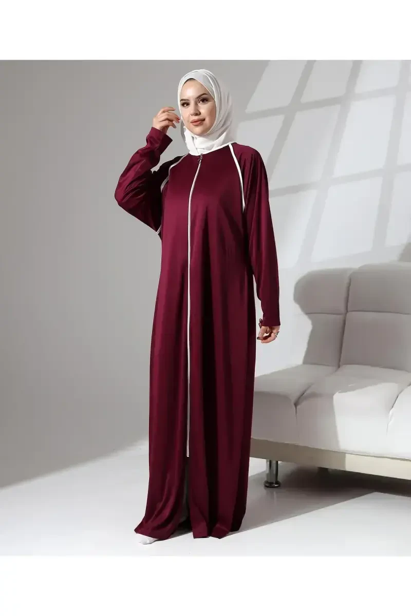 Experience elegance and comfort together with the Full Zipper Closure Denim Daily Oversize Prayer Abaya! This abaya, bearing the nobility of the burgundy color, will accompany you in your daily use and prayer services. Thanks to its 100% cotton denim fabric, it does not cause sweating throughout the day and allows your skin to breathe. Its loose fit does not restrict your freedom of movement, and its oversized design offers a modern look. This abaya not only looks stylish but also stands out with its functional features. Thanks to the full zipper closure, you can easily put it on and take it off. The elastics on the sleeve cuffs allow your arms to move comfortably, while the hidden pocket allows you to safely carry your small items. The hooded design protects your head, especially in cool weather or when praying outside. This abaya, which can be worn in all four seasons, will be an indispensable part of your wardrobe. Whether you use it in your daily activities or on special occasions, you will always feel stylish and comfortable. The burgundy color allows you to make different combinations, and its loose fit adapts to every body type. The standard size on the model is suitable for women with different body measurements. The model's measurements are as follows: Height: 175 cm, Bust: 80 cm, Waist: 60 cm, Hips: 91 cm. By owning this stylish and useful abaya, reflect your style and don't compromise on your comfort.
