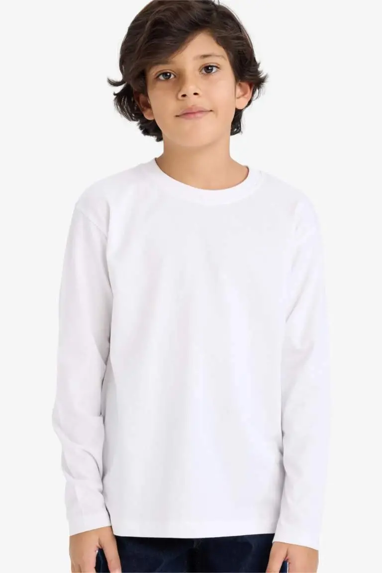 Complete your child's style with the Boys' White Long Sleeve Basic T-Shirt with Round Neck!