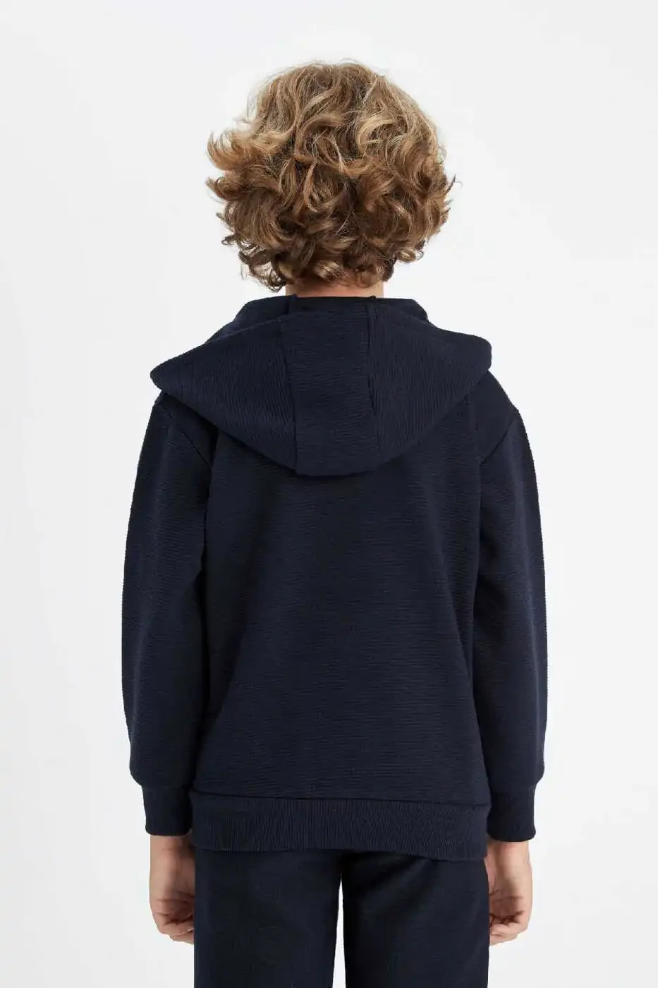 The perfect choice for those looking for a stylish and comfortable school cardigan for little gentlemen! The Boys' Navy Blue Hooded Zip-Up School Cardigan T7468A624AU, with its soft texture and elegant design, will ensure your child's comfort throughout the day.