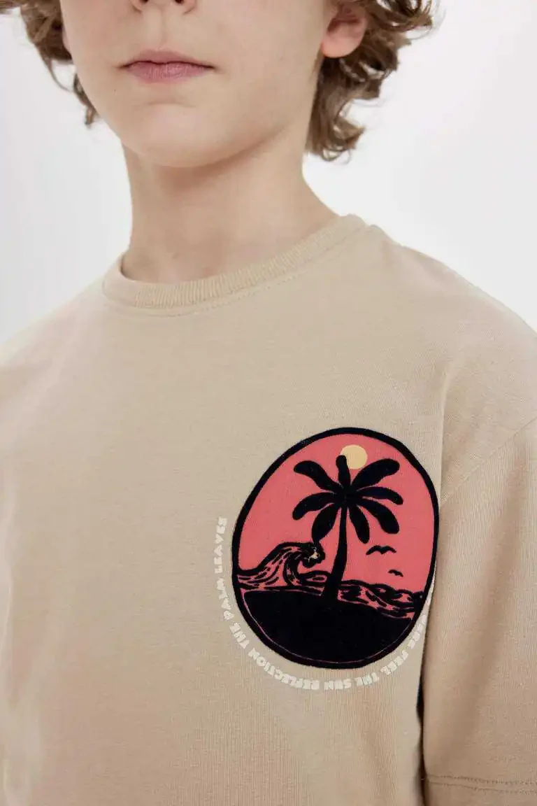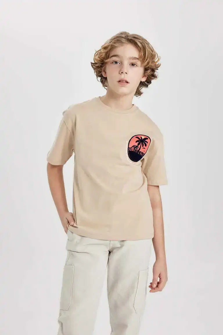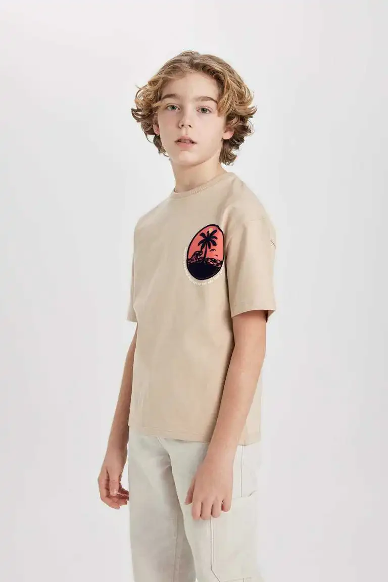 This oversize fit crew neck t-shirt is the perfect choice for your child's comfort and style, combining style and comfort. Its beige color and stylish print will make your child stand out in their wardrobe. The lightweight and breathable fabric keeps your child comfortable all day long, while the oversize fit design allows your child to move freely and feel comfortable.