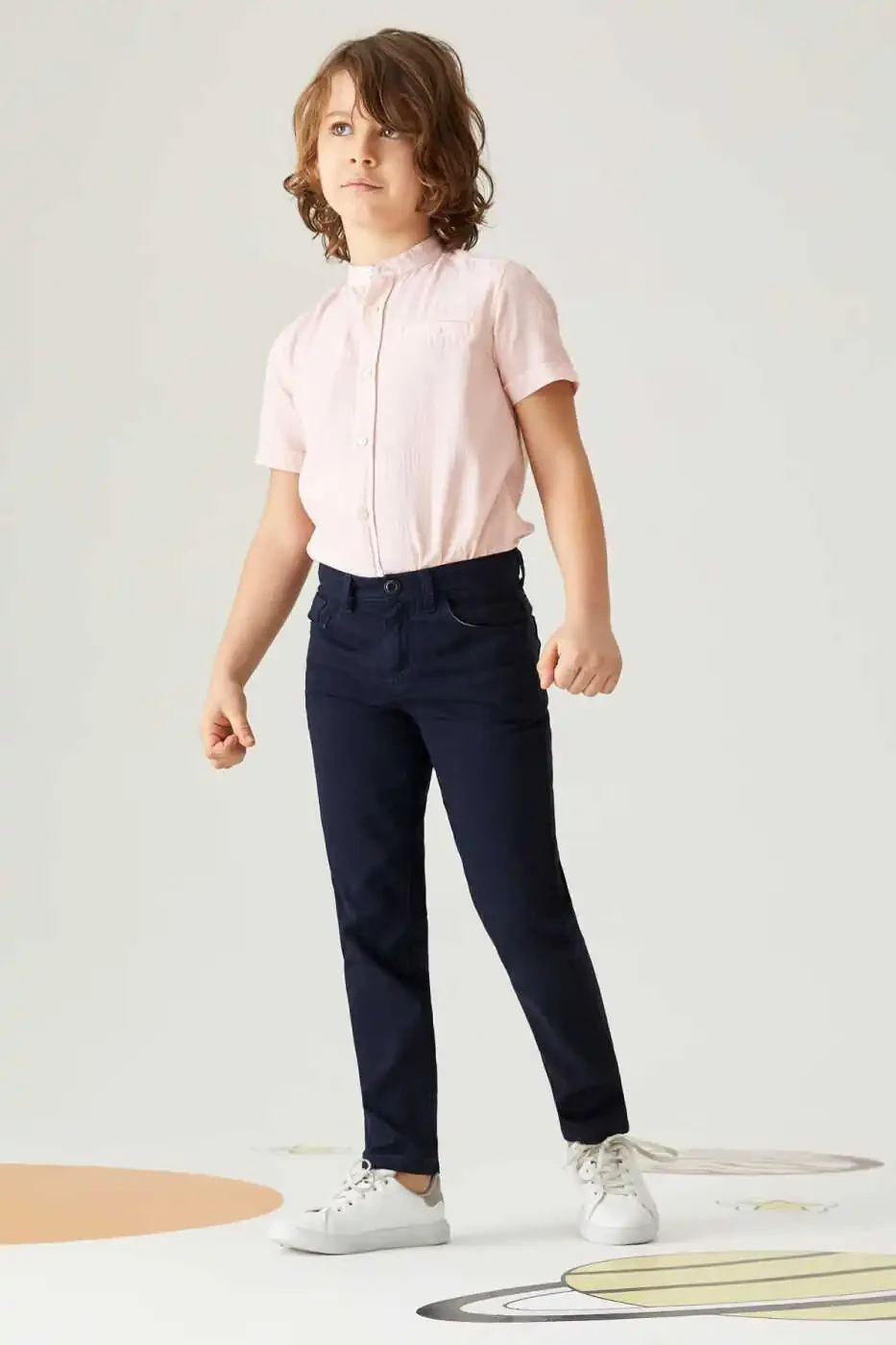If you want to put your child's style and comfort at the forefront, you can choose boys' slim fit straight leg gabardine trousers.