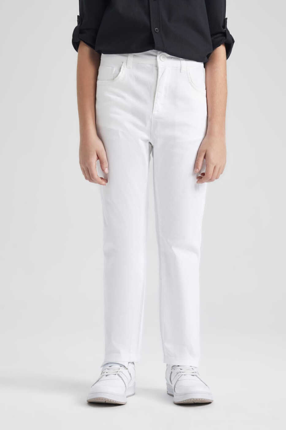 Combining style and comfort, these white gabardine pants are a must-have for young gentlemen's wardrobes. Perfect for everyday wear, the pants provide freedom of movement with their breathable and durable fabric. The soft texture of the pants ensures comfort for your child's skin, making them a perfect choice for special occasions.