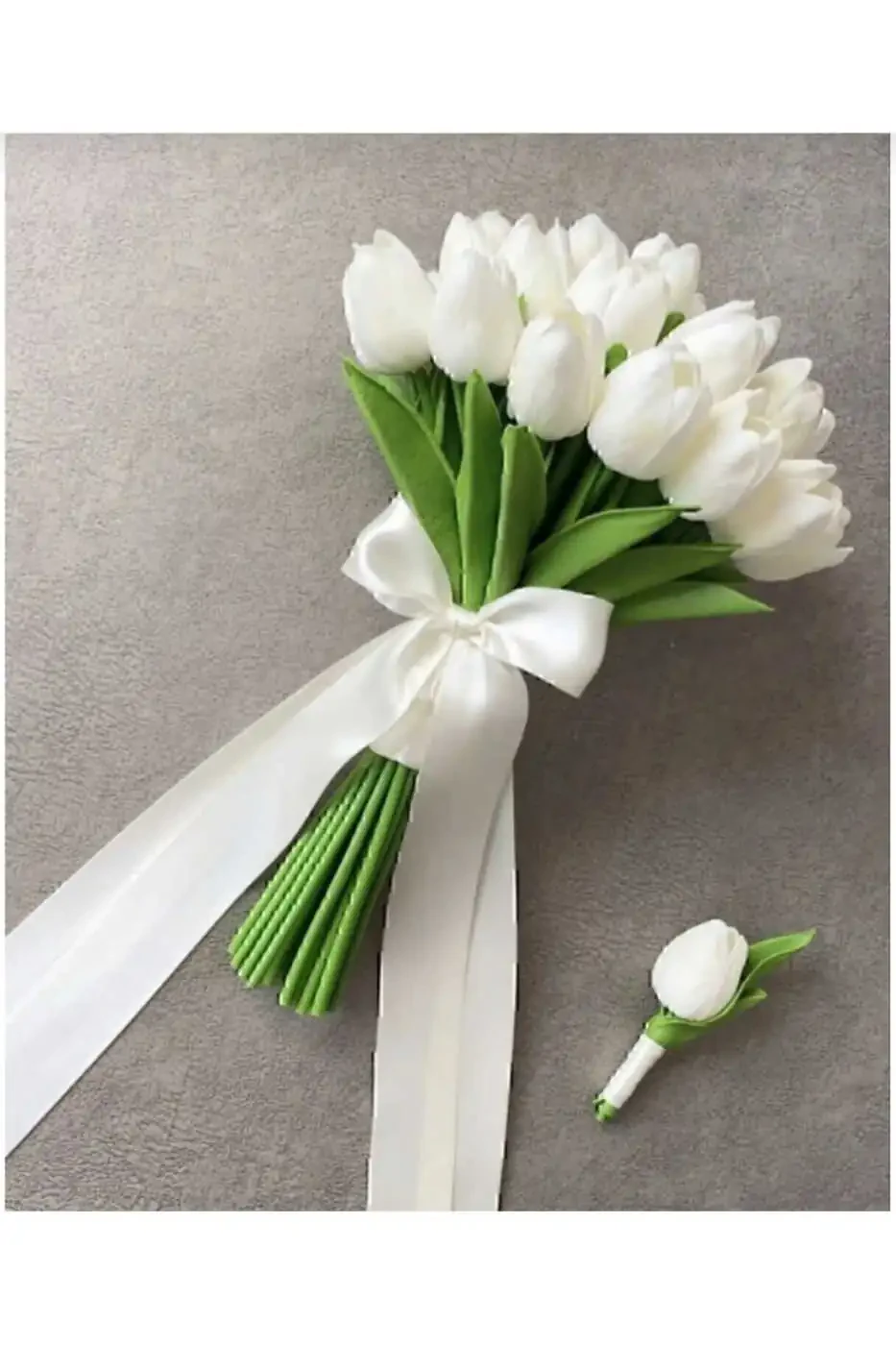 Are you looking for a bridal bouquet that will perfectly reflect your elegance and love on the most special day of your life? This special bridal bouquet, designed with the enchanting beauty of 41 tulips, will accompany your unforgettable moments. The pure and elegant stance of the tulips will perfectly complement your wedding dress and transform you into a spring garden. This special design will be not only a bouquet but also a symbol of your love and new beginning. Each tulip has been carefully selected and brought together to create an eye-catching composition. The groom boutonniere that comes with the bouquet will be the complement of your togetherness and harmony. This special set will have a value that you will keep in your wedding photos and memories for a lifetime. If you want to attract all the attention on your wedding day and enchant with your elegance, this tulip bridal bouquet is for you. Place your order now and start preparing for the most beautiful day of your life. Remember, this special design is not only a bouquet but also an expression of your love and happiness. Step into the enchanting world of tulips and make your wedding day unforgettable.