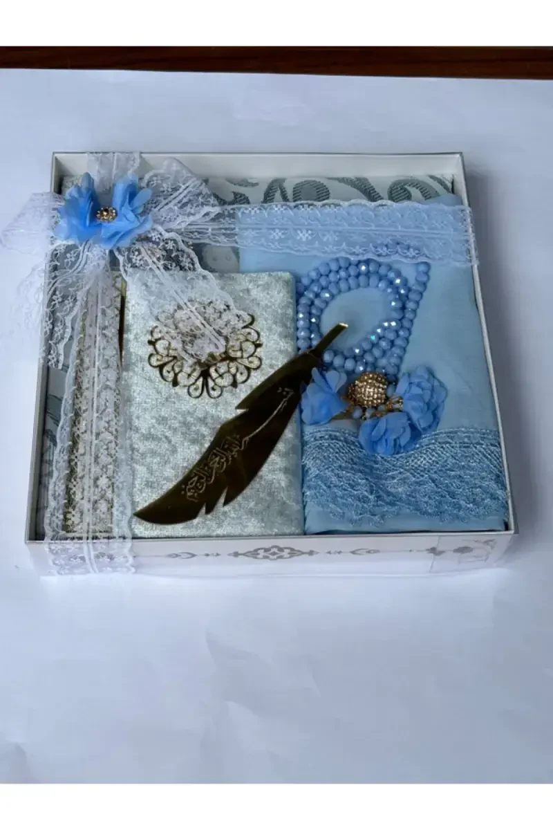 Bridal Groom Prayer Rug Set - Baby Blue is a stylish and meaningful gift option for your special occasions. The set includes a high-quality prayer rug, prayer beads, towel, and a specially designed bundle. The prayer rug offers a comfortable worship experience with its soft texture, while the prayer beads accompany your prayers. The towel is made of 100% cotton and gently touches your skin. The baby blue color adds a peaceful and elegant look to the set. The set is ideal for giving an unforgettable gift to your loved ones on special occasions.Product DescriptionGifts that you will give to your loved ones are of great importance in the preparation for marriage, which is one of the most special moments of your life. Bridal Groom Prayer Rug Set - Baby Blue offers a useful and meaningful gift alternative that will crown your special day. This set consists of special pieces that will accompany the newlyweds in their prayers and bring peace and abundance. The serenity and elegance of the baby blue color add a privileged atmosphere to the set, while each product in it has been carefully selected and designed.The most important part of the set, the prayer rug, is made of high-quality material and makes your prayers more enjoyable thanks to its soft texture. The prayer rug, which draws attention with its durable structure suitable for long-term use, has a peaceful atmosphere with its baby blue color. It also stands out with its ergonomic design that will allow you to feel comfortable while praying.The prayer beads help you establish a spiritual connection while completing your prayers. The prayer beads, which attract attention with their elegant design and high-quality material, have each bead carefully processed and brought together. The baby blue color is in harmony with the prayer rug and completes the integrity of the set.The towel in the set is made of 100% cotton and gently touches your skin. It is a useful product thanks to its high absorbency. The towel, which provides comfort with its soft texture, is ideal for long-lasting use. The baby blue color adds a nice detail to the set.All these special pieces are carefully designed and presented in a stylish bundle in baby blue tones. The bundle both allows the products to be stored in an orderly manner and makes the gift presentation more impressive. The elegant design of the bundle adds value to the set and offers an unforgettable gift experience.Bridal Groom Prayer Rug Set - Baby Blue is not just a gift, but also the most beautiful way to express the value you give to your loved ones and the love you feel for them. By gifting this special set to your relatives, friends or loved ones who are preparing for marriage, you can share their happiness and leave an unforgettable memory. This set will make your special days more meaningful and strengthen the bond between you and your loved ones. With the peaceful effect of the baby blue color, it will accompany the newlyweds in their prayers and bring abundance to their lives.Product Features* High quality prayer rug* Elegant design prayer beads* 100% cotton towel* Specially designed bundle* Baby blue color* Soft textured prayer rug* Ergonomic prayer rug design* Towel with high absorbency* Long lasting use* Stylish and useful bundleAdditional InformationSet contents: Prayer rug, prayer beads, towel, bundle.Prayer rug dimensions: (Dimensions not specified)Towel dimensions: (Dimensions not specified)Material: Prayer rug (Material not specified), Prayer beads (Material not specified), Towel (100% cotton), Bundle (Material not specified)Color: Baby BlueUsage Areas: Bridal groom bundle, gift, marriage preparation, special occasions.