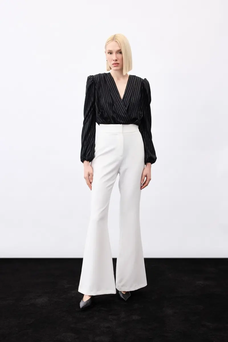 The Bright Striped Bodysuit Blouse is set to become a staple in your wardrobe! Offering timeless elegance with its classic striped pattern, this blouse allows you to achieve a striking look with its bright print. Carefully designed by Origin Fashion, this product is an ideal option for both daily use and special occasions. It offers minimalist elegance with its pocketless design while allowing you to move comfortably. You can easily put it on and take it off thanks to the practical snap fastener system. While offering ideal comfort in seasonal transitions thanks to its medium-thick fabric, it provides a light and breathable wearing experience with its unlined structure. Designed as part of the Modest collection, this blouse allows you to create elegant and stylish combinations. It combines both comfort and style with its Cool & Comfort personality. The wrap silhouette adds a modern and sophisticated look, while the sustainability detail allows you to make an environmentally friendly choice. This blouse not only looks stylish but also offers long-lasting use. By following the washing instructions on the inside label of the product, you can preserve its original appearance for a long time. With its design appealing to all age groups, it has a wide user base and ensures that you are always fashionable thanks to its flexibility that can be worn in all seasons. Supporting the local economy with its production originating from Turkey, it can be easily preferred both in daily life and at special invitations thanks to its midi length. The wrap pattern fits your body lines perfectly, displaying a feminine stance. You will feel a luxurious touch on your skin with its satin fabric. Suitable for adult women/girls, this blouse can be one of the basic pieces of every wardrobe with its wide age range. With its long sleeves, you do not compromise on your elegance while protecting against seasonal conditions. The woven material combines durability and comfort while promising long-term use. It offers a modern and elegant neckline with its wrap collar type. It is an ideal choice for those looking for elegance, comfort and quality together. With this blouse, you can make a difference in any environment and reflect your style in the best way.
