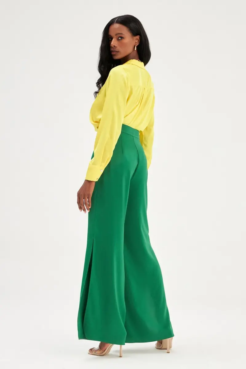 Представляем вам атласные брюки с разрезами Sateen - изумруд, сочетающие в себе элегантность и шик. Очаровательный оттенок изумруда в сочетании с роскошным видом атласной ткани придаст изысканность любому вашему образу. Эти особенные брюки - не просто одежда, а способ выразить свой стиль. Дизайн, подходящий для любой возрастной группы, станет незаменимой частью вашего гардероба. Вы будете ослеплять всех вокруг, будь то на званом ужине или просто дополняя свой повседневный образ. Разрез добавляет брюкам современный и динамичный вид, а однотонный узор и пояс создают классическую элегантность. Обычная посадка обеспечивает комфорт в течение всего дня, а расклешенный крой изящно подчеркивает ваш силуэт. Состав из 100% полиэстера увеличивает долговечность брюк и обеспечивает длительный срок службы. Однотонная ткань предлагает бесконечные возможности стиля благодаря своей способности легко сочетаться с разными топами. В этих брюках вы будете чувствовать себя комфортно и шикарно в непринужденной обстановке. При правильном уходе вы сможете сохранить свои брюки как новые на долгие годы. Не упустите этот эксклюзивный дизайн, предлагаемый с гарантией Trendyol, и добавьте изумрудного сияния своему стилю. Эти брюки - не просто одежда, а инвестиция в себя. Помните, что элегантность кроется в деталях, а атласные брюки с разрезами - изумруд воплощают в себе элегантность в каждой детали. Добавьте эти уникальные брюки в свою корзину прямо сейчас, чтобы поднять свой стиль на новый уровень и выделиться из толпы.