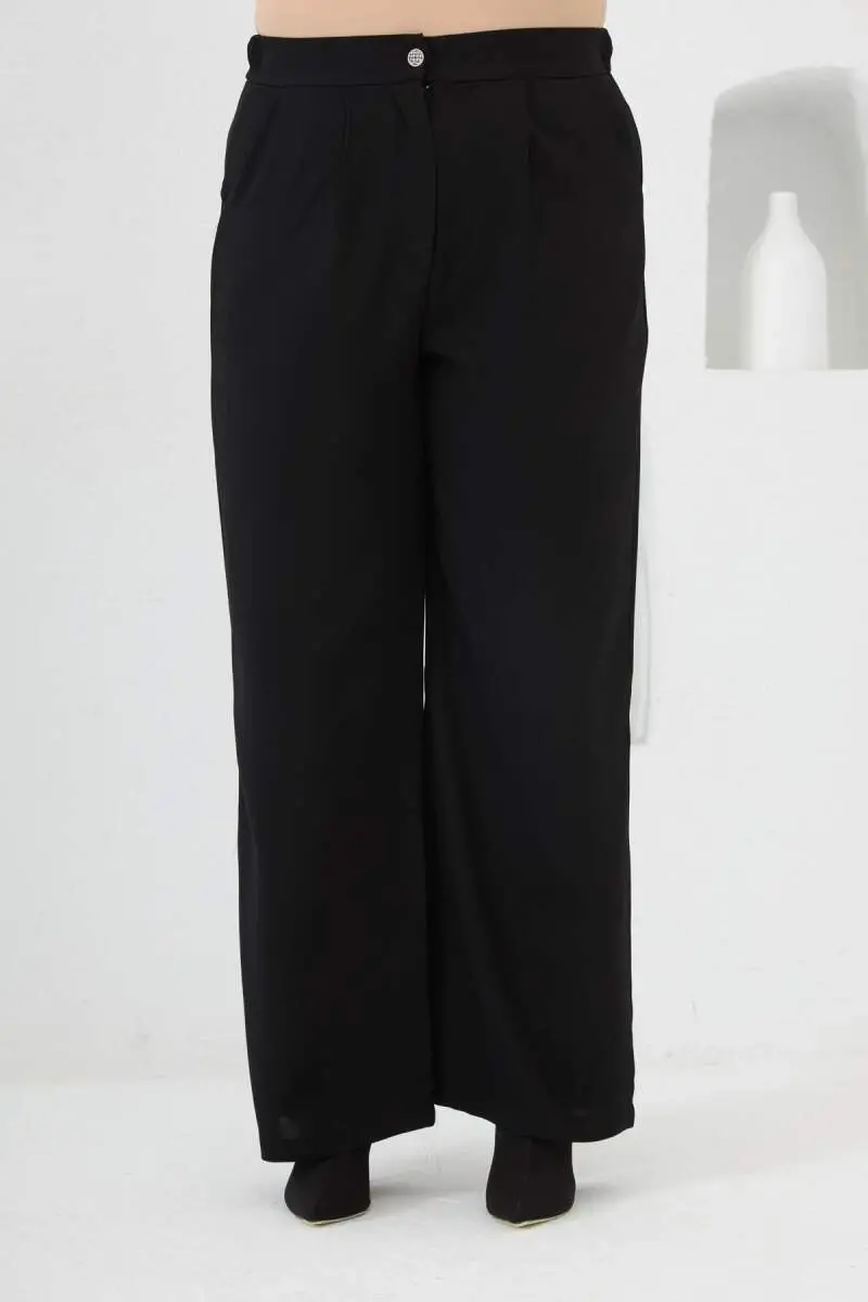Брюки больших размеров с широкими штанинами и эластичной талией, черные