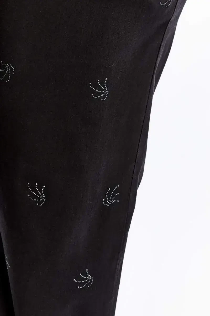 Сочетайте элегантность и комфорт в своем гардеробе с черными широкими брюками большого размера с каменной отделкой. Эти брюки с современным дизайном и удобным кроем помогут вам выделиться в любой обстановке. Высококачественная ткань из смеси тенселя, хлопка и эластана обеспечивает комфорт в течение всего дня, а элегантные каменные детали придают вашему образу изысканность. Эти брюки идеально подходят для любого типа фигуры благодаря широкому выбору размеров plus size и станут вашим любимым предметом одежды, особенно осенью и зимой. Широкий крой штанин создает современный силуэт, не ограничивая свободу движений. Благородный черный цвет сочетается с любыми нарядами, предлагая вам бесконечные возможности. Эти брюки, которые можно носить как повседневно, так и на особые мероприятия, ставят комфорт на первое место, не жертвуя элегантностью. Размер 46 на модели демонстрирует идеальную посадку брюк в диапазоне размеров plus size. Тенсел в составе ткани придает брюкам мягкость, а хлопок позволяет коже дышать. Эластан обеспечивает эластичность, не ограничивая ваши движения. Каменные детали элегантно расположены на передней части брюк, придавая им сияние. Эти детали выделяют брюки среди других и помогают добавить уникальности вашему образу. Эти брюки, разработанные в соответствии с тенденциями осенне-зимнего сезона, согреют вас в холодную погоду, не жертвуя при этом вашей элегантностью. Черные широкие брюки большого размера с каменной отделкой, которые можно с легкостью использовать как в повседневных образах, так и на особых мероприятиях, станут незаменимой частью вашего гардероба. Чувствуйте себя всегда стильно и комфортно в этих брюках, которые отражают ваш стиль и заботятся о вашем комфорте. Качество ткани, тщательная работа пошива и стильный дизайн делают их вещью, которую вы сможете носить долгие годы. Обязательно попробуйте эти брюки, чтобы почувствовать себя особенной и подчеркнуть свой стиль. Эти брюки, сочетающие в себе элегантность и комфорт в одежде больших размеров, станут для вас идеальным выбором.