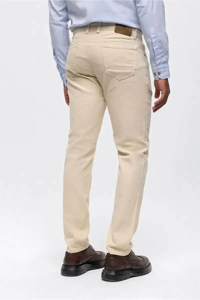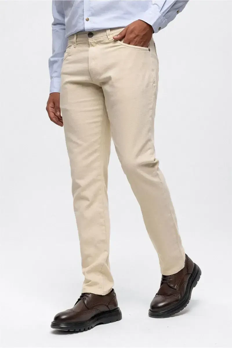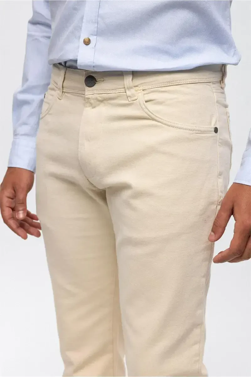 Познакомьтесь с бежевыми хлопчатобумажными брюками чино Slim Fit с 5 карманами, которые сочетают в себе комфорт и стиль, придавая вашему повседневному образу современный штрих. Эти брюки, изготовленные из высококачественной хлопчатобумажной ткани, обеспечивают комфорт в течение всего дня. Посадка Slim Fit идеально облегает ваше тело, создавая стильный и современный силуэт.