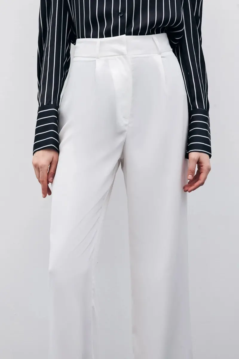 Обновите свой гардероб этими стильными и удобными плиссированными брюками из крепа от Sateen. Эти брюки цвета экрю, сочетающие в себе элегантность и простоту, станут отличным выбором как для повседневной носки, так и для особых случаев. Высокая посадка изящно подчеркивает фигуру, а широкий крой штанин создает современный и непринужденный образ. Плиссированные детали добавляют брюкам движения и динамизма, а легкая и струящаяся структура ткани крепа обеспечивает комфорт в течение всего дня. Застежка-молния и крючок позволяют легко надевать и снимать брюки, а также гарантируют надежную посадку по талии. Наденьте их на особое мероприятие с шикарной блузкой и туфлями на каблуках или создайте повседневный шик с удобной футболкой и кроссовками - эти брюки помогут вам отразить свой стиль в любой ситуации. Длина брюк составляет 115 см, на модели размер 36/S. Параметры модели: рост: 1,76, грудь: 83, талия: 60, бедра: 90. Помните, что ремень, предложенный в качестве варианта комбинирования, не входит в комплект, но вы можете создавать разные образы со своим собственным ремнем. Наши запасы ограничены, поэтому поспешите и добавьте эту уникальную вещь в свой гардероб. Благодаря выгодным условиям возврата от Trendyol вы можете бесплатно вернуть товар в течение 15 дней. Эти плиссированные брюки из крепа, сочетающие в себе элегантность и комфорт, станут незаменимой вещью для стильных женщин.