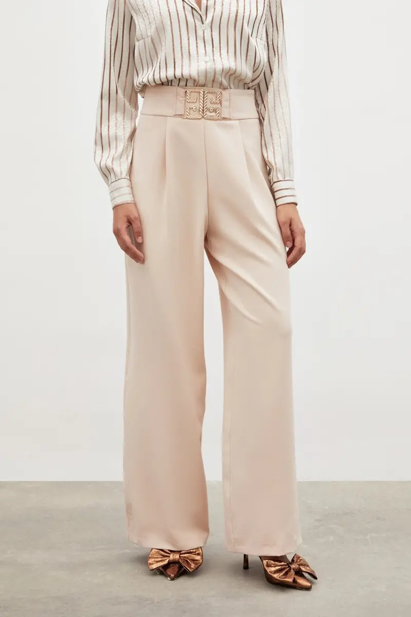 Обновите свой гардероб с помощью элегантных и стильных брюк с широкими штанинами и поясным аксессуаром от QİMYA BUTİK. Эти бежевые брюки с современным дизайном и удобным кроем идеально подходят как для повседневной носки, так и для особых случаев. Высокая посадка идеально подчеркивает вашу фигуру, а широкий крой штанин обеспечивает стильный вид, не ограничивая свободу движений. Боковая застежка-молния позволяет легко надевать и снимать брюки, а поясной аксессуар добавляет изысканности вашему образу.Эти особые брюки легко сочетаются с любой верхней одеждой. Наденьте их с элегантной блузкой на особое мероприятие или с повседневной футболкой на расслабленные выходные – они помогут вам отразить свой стиль в любой ситуации. Бежевый цвет брюк универсален и хорошо сочетается с разными цветами. Вы можете создать более элегантный образ с туфлями на каблуке или более спортивный образ с кроссовками.Брюки с широкими штанинами и поясным аксессуаром изготовлены из качественной ткани, что обеспечивает долговечность. Структура ткани обеспечивает комфорт в течение всего дня, а устойчивость к сминанию помогает всегда выглядеть опрятно. Дизайн и качество материала изделия соответствуют вашим ожиданиям, сочетая в себе стиль и комфорт.Можно заказать не более 10 единиц данного товара. Заказы, превышающие 10 единиц, могут быть отменены Trendyol. Данное ограничение не распространяется на корпоративные заказы, для которых установлены другие лимиты. Если вы не удовлетворены товаром, вы можете воспользоваться возможностью бесплатного возврата в течение 15 дней.На модели изделие размера 36/S. Параметры модели: рост 1,76, грудь 83, талия 60, бедра 90. Эта информация поможет вам выбрать правильный размер. Длина изделия 118 см.Брюки с широкими штанинами и поясным аксессуаром – идеальный выбор для женщин, которые ищут сочетание стиля и комфорта. Эти брюки станут незаменимой частью вашего гардероба и помогут вам привлекать внимание в любой обстановке.