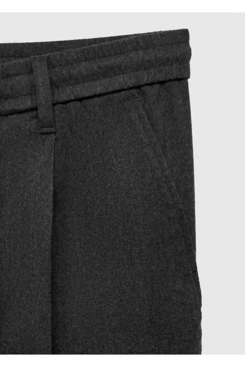 Брюки прямого кроя, брюки со складками, брюки из фланели, брюки Mango, стильные брюки, детали со складками