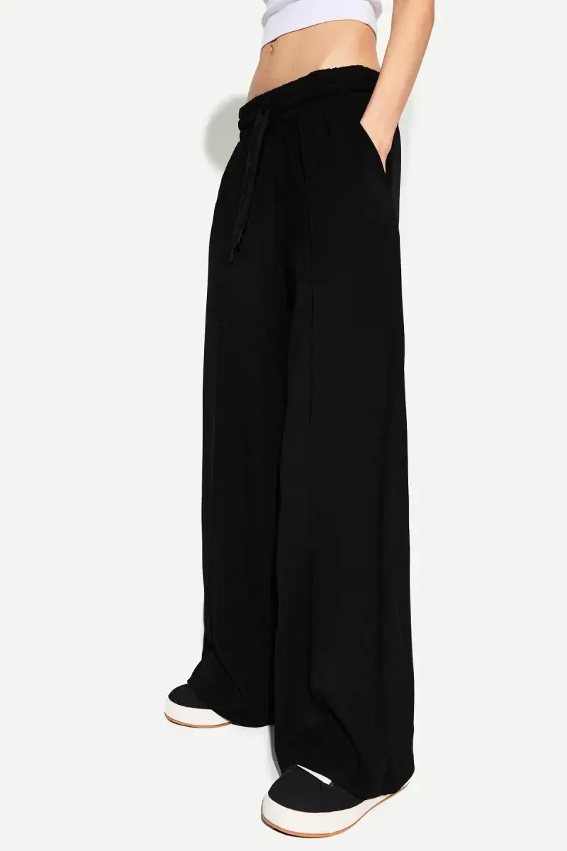Широкие брюки подходят для всех возрастов и могут легко использоваться всеми возрастными группами. Благодаря трикотажной структуре ткани, она обеспечивает комфорт в течение всего дня благодаря своей мягкой текстуре и удобной структуре. Обычный дизайн талии обеспечивает стильный вид, идеально облегая тело и обеспечивая свободу движений. Классический крой брюк создает современный и вневременной стиль, в то время как их можно легко комбинировать с любой обувью. С однотонным вариантом достигается простой и стильный вид, и его можно легко комбинировать с разными элементами верхней одежды.