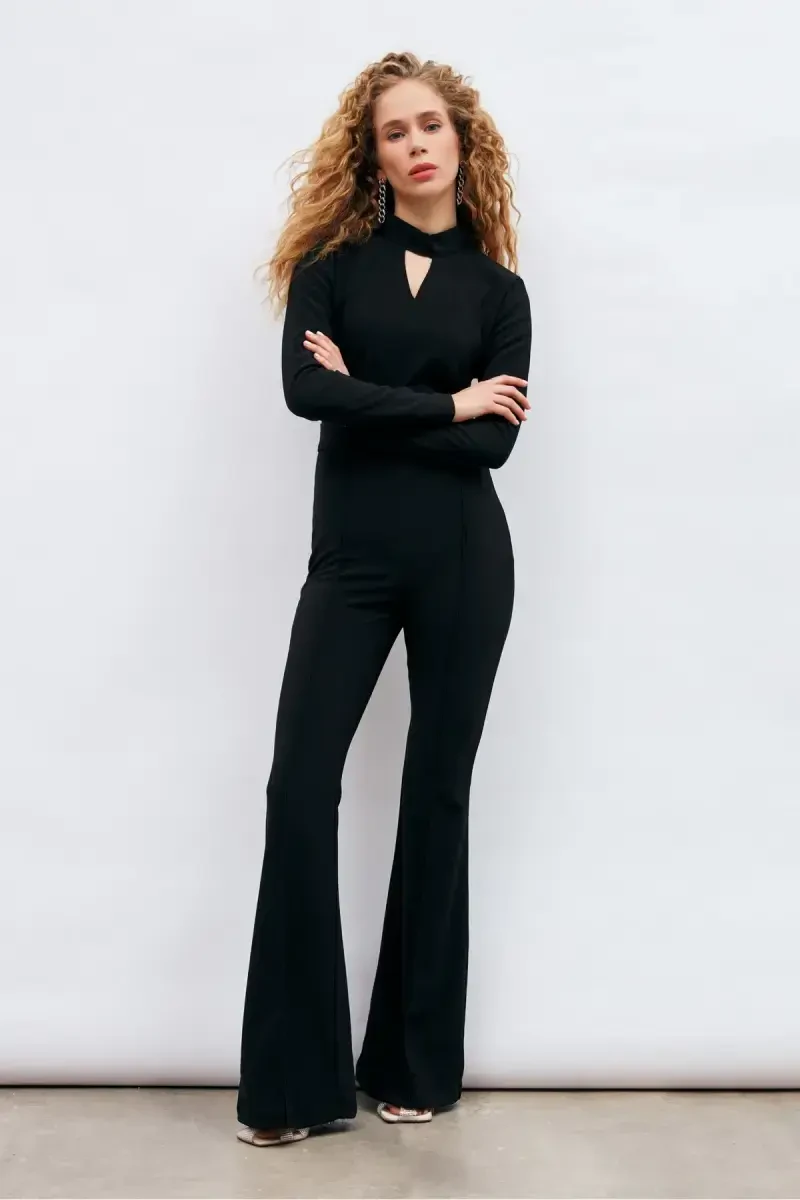 Повысьте свой стиль с нашими брюками с испанскими штанинами, сочетающими элегантность и комфорт! Эти брюки черного цвета подойдут к любому комплекту, а их изящные штанины освободят ваши движения. Сделайте выбор, который будет говорить о вашем стиле в любой обстановке, от повседневной жизни до особых случаев.