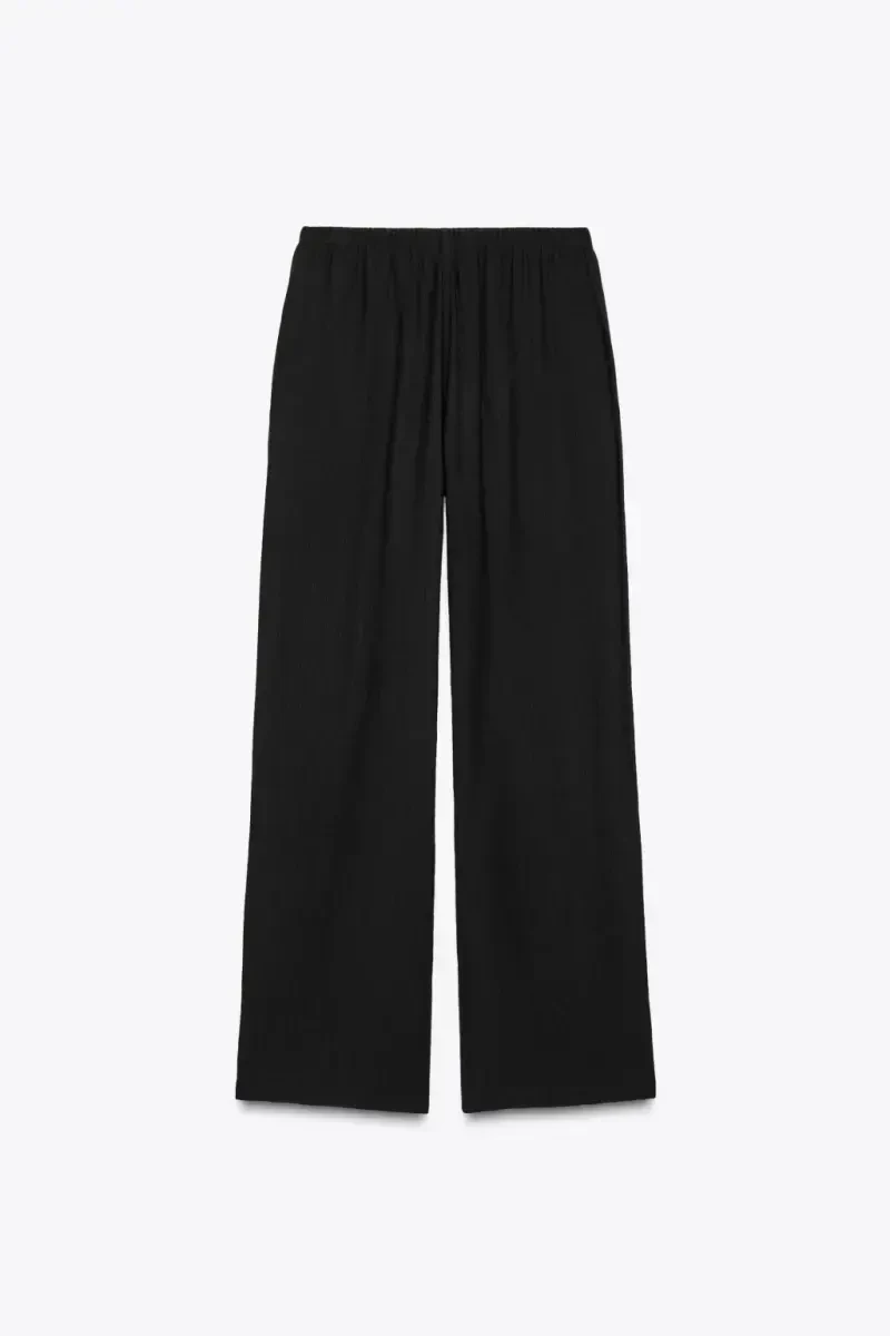 БРЮКИ С ШИРОКИМИ ШТАНИНАМИ И ЭЛАСТИЧНОЙ ТАЛИЕЙ - Черный - это дизайн, который предлагает элегантность и комфорт вместе и является кандидатом на то, чтобы стать незаменимым в вашем гардеробе. Эти брюки, отражающие тенденции современной моды, будут сопровождать вас как в повседневной жизни, так и в особых случаях. Высокая посадка и широкий крой штанин безупречно подчеркивают ваши формы, не ограничивая при этом свободу движений. Эти брюки, несущие в себе благородство черного цвета, являются идеальным выбором для любого образа. Вы можете отразить свой собственный стиль, дополнив их элегантной блузкой и туфлями на каблуках или спортивной футболкой и кроссовками. Эластичная высокая талия, регулируемая кулиской, обеспечивает комфорт в течение всего дня, подчеркивая тонкость талии. Передние карманы обеспечивают удобство. БРЮКИ С ШИРОКИМИ ШТАНИНАМИ И ЭЛАСТИЧНОЙ ТАЛИЕЙ - Черный обещает долговечность благодаря качественной ткани и тщательному исполнению. Наслаждайтесь тем, что всегда будете выглядеть стильно и комфортно с этой вещью, которая обязательно должна быть в вашем шкафу. Комбинируя ее с разными топами и аксессуарами, вы сможете создать привлекательный образ в любой обстановке. Будь то в офисе, на ужине или на выходных, в этих брюках вы всегда будете стильными. Эти брюки, разработанные для женщин, которые любят комфорт, но не хотят жертвовать элегантностью, являются кандидатом на то, чтобы стать самой любимой вещью в вашем гардеробе. Благодаря черному цвету их легко комбинировать с топами любого цвета и рисунка, что позволяет создавать разные стили. С БРЮКАМИ С ШИРОКИМИ ШТАНИНАМИ И ЭЛАСТИЧНОЙ ТАЛИЕЙ - Черный теперь так легко создать стильный и комфортный образ!
