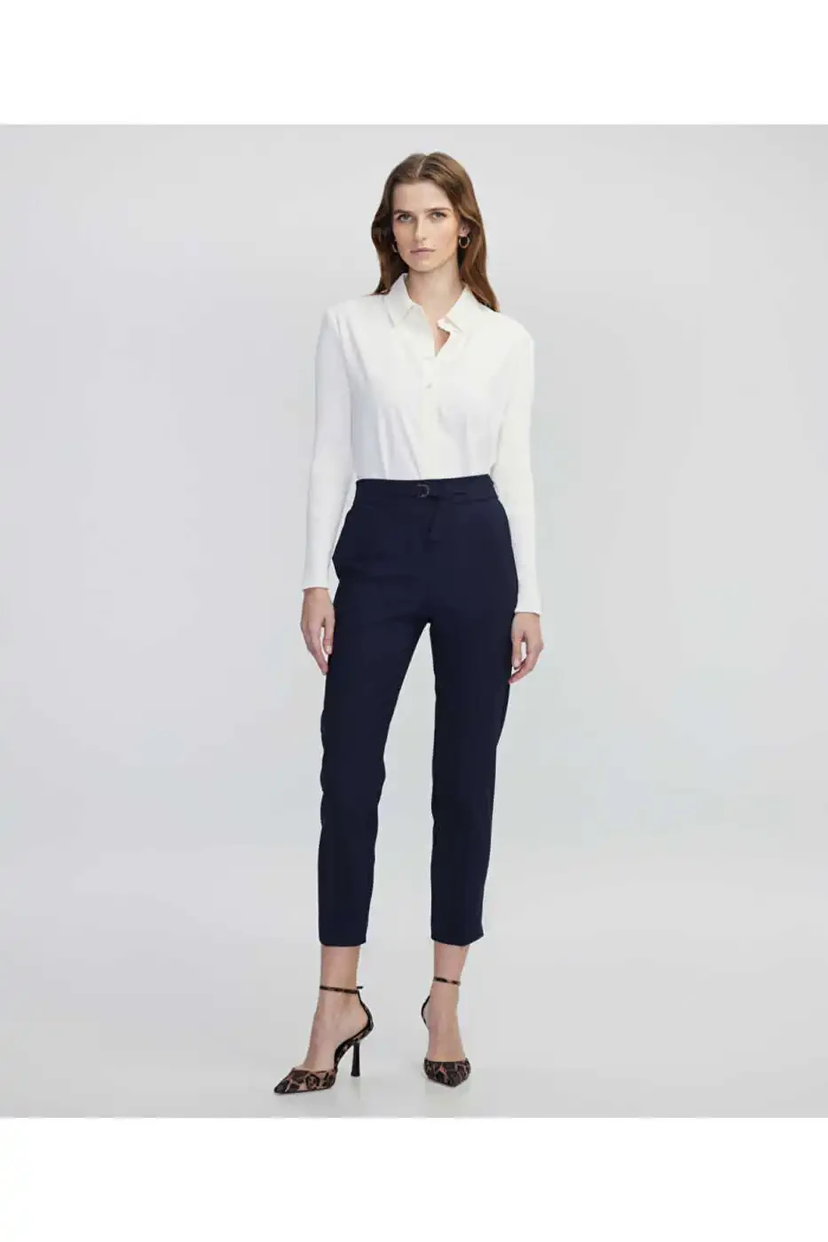 Эти узкие брюки сочетают в себе комфорт и стиль. Изготовленные из высококачественной ткани, эти брюки обеспечат вам комфорт на весь день. Тонкая деталь ремня подчеркивает вашу талию, придавая вам шикарный вид. Кроме того, этот продукт поставляется с возможностью бесплатного возврата, так что вы можете делать покупки со спокойной душой.