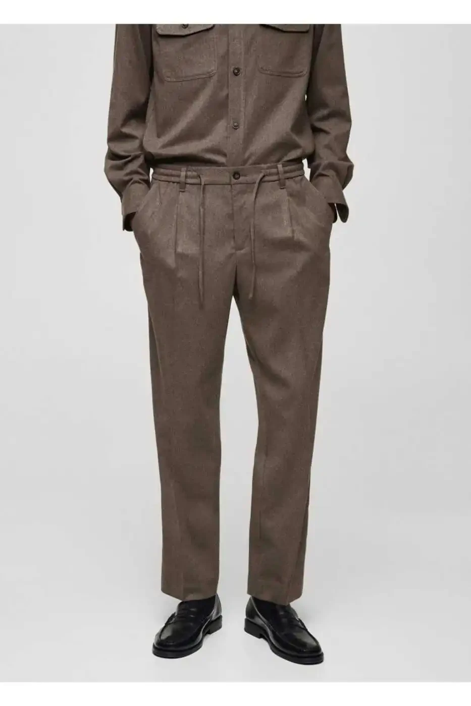 Брюки прямого кроя, брюки со складками, брюки со шнурком, MANGO, мужские брюки