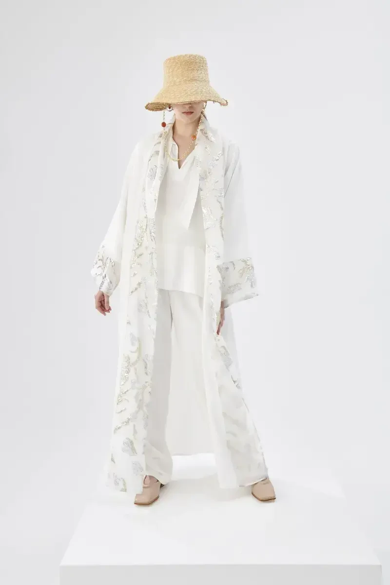 Brokar Garnili Abaya Beyaz & Şal-beyaz, Nuum Design'ın özenle tasarladığı, gündüzden geceye her ortamda rahatlıkla tercih edebileceğiniz, şıklığı ve konforu bir araya getiren özel bir parçadır. Orta kalınlığı sayesinde mevsim geçişlerinde ideal bir kullanım sunarak vücut ısınızı dengede tutar. Belinizi zarifçe saran kuşak detayı ile feminen bir siluet oluştururken, bu detayı kişisel zevkinize göre ayarlama imkanı bulursunuz. Dokuma kumaş yapısı, abayanın dayanıklılığını ve nefes alabilirliğini artırarak uzun süreli bir kullanım vaat eder. Tesettür giyim koleksiyonunun modern ve şık bir parçası olarak tasarlanmış olan bu abaya, her gardıropta yerini alacak özel bir parçadır. Poliüretan materyali sayesinde kolay bakım avantajı sağlarken, leke tutmaz özelliğiyle pratik bir kullanım deneyimi sunar. Dokuma detayları ile zenginleştirilmiş tasarım, abayanın estetik görünümünü güçlendirirken aynı zamanda ekstra dayanıklılık kazandırır. Genç yaş grubuna hitap eden dinamik ve trend tasarımlarıyla gençlerin enerjisini yansıtırken, tüm yaş gruplarına da hitap etme potansiyeli taşır. Abaya, birden fazla satıcı tarafından satışa sunulabilmektedir. Satıcılar, ürün için belirledikleri fiyata, satıcı puanlarına, teslimat statülerine, ürünlerdeki promosyonlara, kargonun bedava olup olmamasına, ürünlerin hızlı teslimat ile teslim edilip edilememesine, ürünlerin stok ve kategorileri bilgilerine göre sıralanmaktadır. Ürünün şıklığı ve kullanışlılığı bir arada sunması, onu vazgeçilmez kılacak özelliklerindendir. Brokar detaylarının zarafeti, beyazın asilliği ile birleşerek göz alıcı bir görünüm sunar. Şal-beyaz kombinasyonu ise bütünlüğü tamamlayarak şıklığınızı bir üst seviyeye taşır. Özel davetlerden günlük kullanıma kadar her anınızda size eşlik edecek bu abaya ile tarzınızı yansıtın.