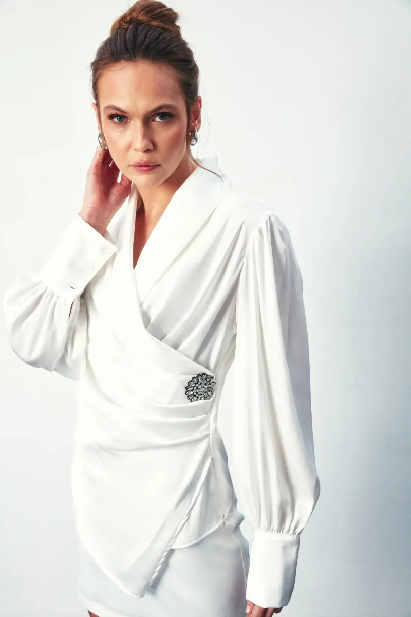 Design kolleksiyasi uchun maxsus ishlab chiqilgan Broshli Kesishgan Bluz, nafislik va zamonaviy chiziqlarni birlashtirib, garderobingizning ajralmas qismiga aylanishga nomzod. Ekru rangining nafisligi bilan har qanday kombinatsiyangizga oson moslashadigan bu bluz, kesishgan yoqa detali tufayli murakkab ko'rinishni taqdim etadi. Kundalik foydalanishda ham, maxsus tadbirda ham o'z chiroyingizni namoyish etadigan ushbu dizayn uslubga ega ayollarning e'tiborini qozonadi. Standart uzunligi turli tana turlariga mukammal moslashadi, qulay kesimi esa kun bo'yi qulay foydalanish imkoniyatini beradi. Yuqori sifatli 100% polyester material bluzaning uzoq umr ko'rishini ta'minlaydi, shuningdek, parvarish qilish imkoniyatini ham beradi. Shunday qilib, band bo'lgan kuningizda ham chiroyingizdan voz kechmasdan amaliy foydalanishga erishasiz. Brosh detali bluzaga alohida havo beradi, tekis naqsh esa turli aksessuarlar va pastki kiyimlar bilan oson kombinatsiyalash imkonini beradi. Uzun qisma dizayni mavsumiy o'tishlarda ideal himoyani ta'minlaydi va uni har qanday mavsumda ishlatishingiz mumkin bo'lgan qismga aylantiradi. Asosiy siluet har qanday pastki kiyim bilan mos keladi va abadiy chiroy beradi. Xoh jeans bilan kundalik kombinatsiya yarating, xoh yubkalar bilan yanada hashamatli ko'rinishga ega bo'ling, Broshli Kesishgan Bluz har doim sizga hamroh bo'ladi. Type 1 yuvish bo'yicha ko'rsatmalarga muvofiqligi uning tozalanishining qanchalik amaliy ekanligini ko'rsatadi, shuningdek, bluzaning shaklini uzoq vaqt saqlaydi. Ushbu bluz nafaqat chiroyli, balki funktsional qism sifatida ham ajralib turadi. Garderobingizda bo'lishi kerak bo'lgan, abadiy va ko'p qirrali variant.