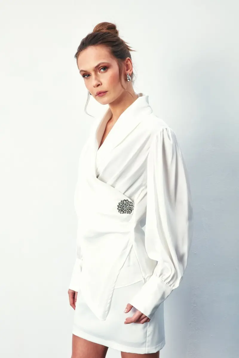Design koleksiyonuna özel olarak tasarlanmış Broşlu Kruvaze Bluz, zarafeti ve modern çizgileri bir araya getirerek gardırobunuzun vazgeçilmez parçası olmaya aday. Ekru renginin asaletiyle her kombininize kolayca uyum sağlayan bu bluz, kruvaze yaka detayı sayesinde sofistike bir görünüm sunar. İster günlük kullanımda, ister özel bir davette şıklığınızı ön plana çıkaracak bu tasarım, stil sahibi kadınların beğenisini kazanacak. Standart boyu farklı vücut tiplerine mükemmel uyum sağlarken, rahat kesimi gün boyu konforlu bir kullanım deneyimi sunar. Yüksek kaliteli %100 polyester materyali, bluzun uzun ömürlü olmasını sağlarken, kolay bakım imkanı da sunar. Bu sayede, yoğun temponuzda bile şıklığınızdan ödün vermeden pratik bir kullanım elde edersiniz. Broş detayı, bluza ayrı bir hava katarken, düz deseni sayesinde farklı aksesuarlar ve alt giyimlerle kolayca kombinlenebilir. Uzun kollu tasarımı, mevsim geçişlerinde ideal koruma sağlayarak her mevsim kullanabileceğiniz bir parça olmasını sağlar. Basic silueti, her tür alt giyimle uyum sağlayarak zamansız bir şıklık sunar. İster jeanlerle günlük bir kombin oluşturun, ister eteklerle daha şık bir görünüm elde edin, Broşlu Kruvaze Bluz her durumda size eşlik edecek. Type 1 yıkama talimatına uygun olması, temizliğinin ne kadar pratik olduğunu gösterirken, bluzun formunu uzun süre korumasını sağlar. Bu bluz, sadece şık değil, aynı zamanda fonksiyonel bir parça olarak da öne çıkar. Gardırobunuzda mutlaka bulunması gereken, zamansız ve çok yönlü bir seçenektir.