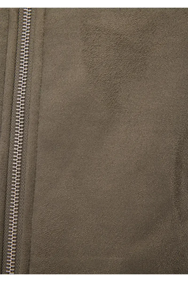 You can create a stylish and comfortable look by combining your brown faux suede jacket with jeans, leggings, dresses or skirts. You can achieve a more simple look by complementing it with a white t-shirt or shirt. You can complete your jacket with heels, sneakers or boots.