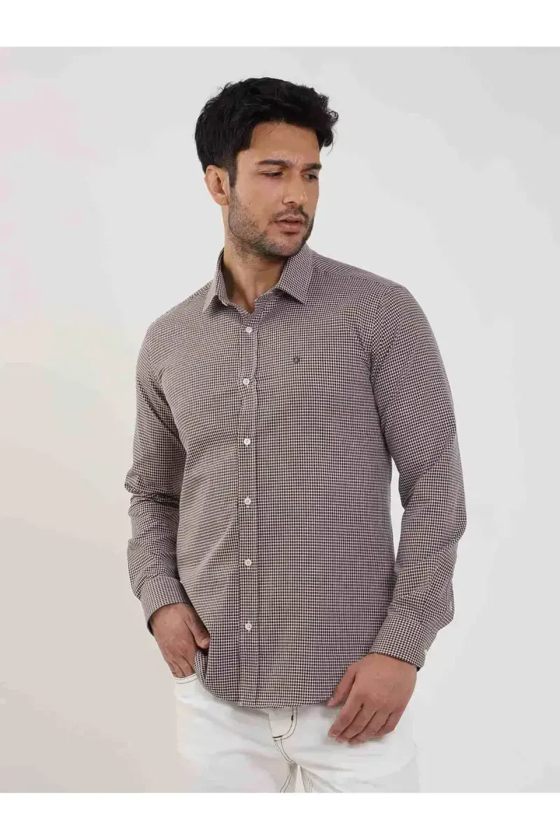 The brown men's slim fit polka dot Brent collar long sleeve shirt goes perfectly with jeans, chinos and dress pants. You can complete your style by combining it with your suits for special occasions. It is an ideal choice for men who seek comfort and style together.