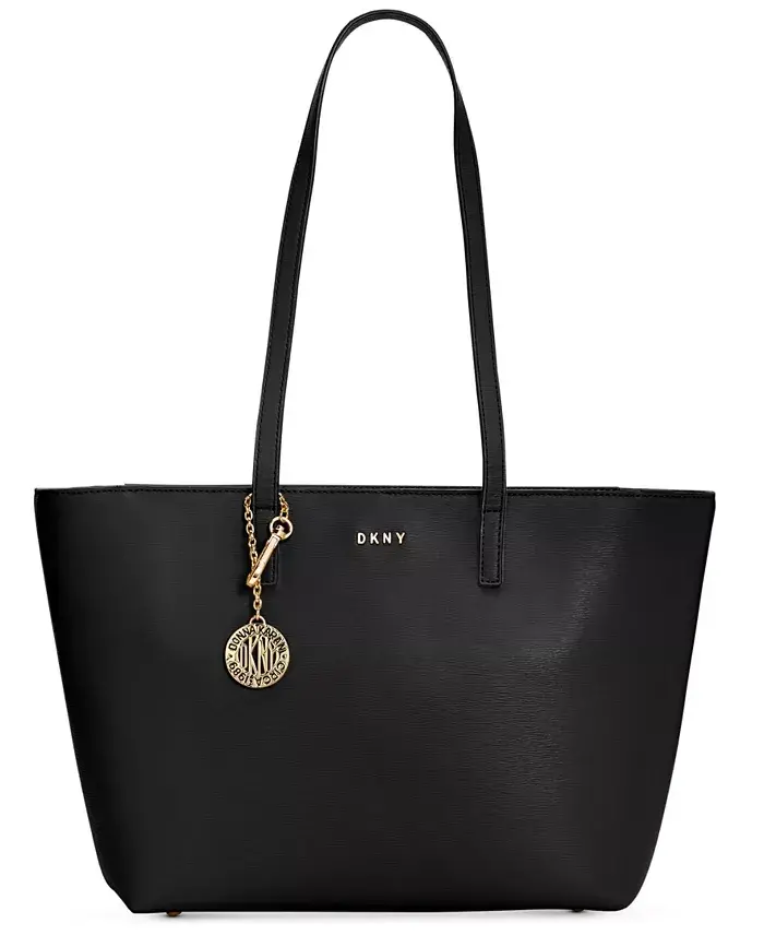 Bryant Medium Zippered Tote Bag-Black, Gold Tone