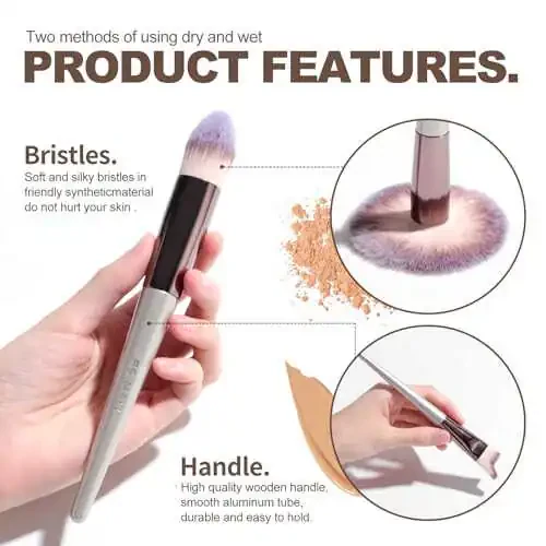 PREMIUM SYNTHETIC FIBER: The handles of cosmetic brushes are made of high-end alloy and wood material. The bristles are well made of soft and silky nylon, ensured for long time use. All the brushes are fine and dense, suitable for even the most sensitive skin.