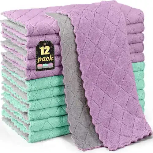 Набор кухонных полотенец BUEDM из 12 штук - идеальное решение для ваших повседневных потребностей в уборке. Изготовленные из мягкого и очень впитывающего микрофибрового материала из кораллового бархата, эти полотенца не оставляют ворса и не линяют. Они не царапают столешницы, стекло и деликатные материалы при уборке. Обладая супер впитывающей способностью воды и масла, эти салфетки быстро впитывают разливы жидкости или масла, обеспечивая превосходный эффект очистки. Идеально подходят для очистки пыли, грязи, пятен, масляных пятен и отпечатков пальцев на кухонной утвари, мебели, в ванной комнате, автомобиле, окнах и электроприборах. Их можно стирать в посудомоечной и стиральной машине и использовать повторно. Благодаря быстросохнущей функции они обеспечивают практичность и скорость для ваших повседневных нужд. Благодаря вакуумной упаковке он качественно и компактно доставляется к вам. Этот набор, содержащий в общей сложности 12 полотенец (300 × 300 мм / 12 x 12 дюймов) зелено-серого и фиолетово-серого цветов, обеспечивает простоту использования для различных целей. Каждое полотенце имеет большую площадь для уборки размером 12x12 дюймов. Прочная конструкция обеспечивает длительное использование и выдерживает многократную стирку. Благодаря своей микрофибровой структуре он обеспечивает эффективную очистку, не повреждая поверхности во время уборки. Кухонные полотенца BUEDM предназначены для облегчения уборки на кухне, в ванной, в машине и в других местах дома. Благодаря высокой впитывающей способности они помогают быстро очистить разливы и пятна. Устойчивая к царапинам конструкция позволяет безопасно использовать их даже на деликатных поверхностях. Цветовые варианты добавят элегантности вашей кухне, а практичное использование сделает уборку приятной. С набором кухонных полотенец BUEDM из 12 штук уборка стала намного проще!