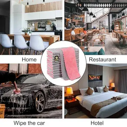 Meet the BUEDM 12-Pack Kitchen Cloth Dish Towels, which will be indispensable for cleaning in the kitchen, bathroom, and even in the car. This set consists of 12 soft and absorbent dish cloths, each 12x12 inches in size, made of high-quality microfiber material. Whether you're drying your dishes, cleaning your kitchen counter, or polishing surfaces in your bathroom, BUEDM microfiber cloths are ideal for meeting all your cleaning needs.BUEDM microfiber cleaning cloths not only clean surfaces but also effectively absorb dirt, oil, and other residues. Thanks to its special texture, it does not leave marks or scratches on surfaces, so you can safely use it for your delicate items. Thanks to its absorbency, it quickly absorbs water and dries surfaces in a short time, saving you time.These cloths not only work wonders for the kitchen and bathroom, but also in car cleaning. You can remove dust from the interior of the vehicle, polish windows, and clean upholstery. Offering versatile use, BUEDM microfiber cloths will help you in every corner of your home and car.Thanks to its durable structure, it can be washed and reused many times. This makes it an environmentally friendly option and helps you save money in the long run. The high-quality microfiber material retains its softness and absorbency even after washing, so it offers the same performance for a long time.BUEDM 12-Pack Kitchen Cloth Dish Towels are not only practical and useful, but also have a stylish and modern design. There are various color options to match the decoration of your kitchen or bathroom. These cloths will not only be a cleaning tool, but also a part of your home.If you are looking for a reliable, effective, and versatile solution for cleaning your home, the BUEDM 12-Pack Kitchen Cloth Dish Towels are for you. Order now and enjoy cleaning!