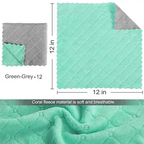 BUEDM 12-Piece Kitchen Cloth Set is a perfect solution for your daily cleaning needs. Made of soft and highly absorbent coral velvet microfiber material, these cloths are lint-free and non-fading. They won't scratch surfaces while cleaning countertops, glass, and delicate materials. With super water and oil absorption capacity, BUEDM kitchen cloths quickly absorb liquid or oil stains and provide a perfect cleaning effect. Ideal for cleaning dust, dirt, stains, grease stains, and fingerprints on various surfaces such as dishes, kitchen counters, bathrooms, cars, windows, and appliances. Durable and long-lasting, these cloths are reusable and can be washed in the dishwasher and washing machine. Thanks to its quick-drying feature, you can handle your daily cleaning tasks faster and more efficiently. BUEDM kitchen cloths come in a pack of 12, in green-gray color and 300 × 300 mm (12 x 12 inches) size, which you can use for different purposes. Thanks to its vacuum packaging, you can store high-quality kitchen cloths compactly and stylishly. Make cleaning easier with BUEDM kitchen cloths and ensure hygiene in every corner of your home. Thanks to its microfiber structure, it provides deep cleaning, while its soft texture can be used safely even on sensitive surfaces. It is scratch-resistant and ideal for long-term use. Choose BUEDM 12-Piece Kitchen Cloth Set to meet your cleaning needs in the kitchen, bathroom, car, or anywhere in your home.
