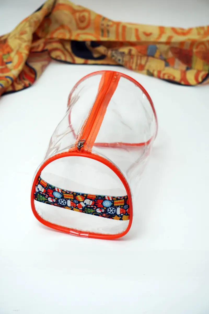Bumerang Desen El Tutmalı Büyük Boy Turuncu Şeffaf Tatil, Plaj, Kozmetik ,makyaj Ve Bakım Çantası-Bumerang