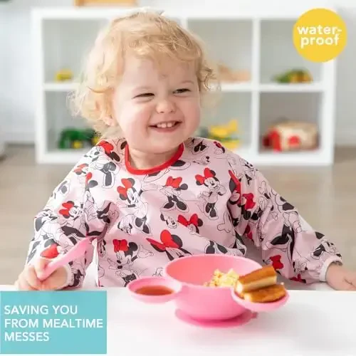 С нагрудниками Bumkins Disney Bibs кормление малышей станет еще более увлекательным и чистым! Этот нагрудник с длинными рукавами, специально разработанный для младенцев и маленьких детей в возрасте 6-24 месяцев, предлагает идеальное решение для любого беспорядка, который может возникнуть во время еды. Этот очаровательный нагрудник с классическим рисунком Минни Маус идеально подходит как для девочек, так и для мальчиков. Благодаря уникальному дизайну он защищает одежду вашего ребенка и обеспечивает его комфорт. Изготовленные из высококачественных материалов, нагрудники Bumkins Disney Bibs - незаменимый предмет детского обихода, облегчающий жизнь мамам и папам. Благодаря специальному карману для крошек, предназначенному для улавливания пролитой пищи, он сводит к минимуму загрязнение окружающей среды и сокращает время уборки. Вы можете перевести дух, пока ваш ребенок развивает навыки самостоятельной еды. Конструкция с длинными рукавами также защищает руки вашего ребенка, а эластичные манжеты позволяют регулировать длину рукава. Завязка сзади обеспечивает надежную фиксацию нагрудника. Благодаря ширине груди около 35 см, длине от шеи вниз 33 см и длине от манжеты до манжеты 81 см, ваш ребенок может свободно двигаться. Bumkins Disney Bibs - это не только практичный, но и стильный аксессуар. Он превращает кормление вашего ребенка в восхитительный опыт, дополняя его очаровательный внешний вид. Этот нагрудник также является отличным вариантом подарка. Если вы хотите подарить своим новоиспеченным друзьям или членам семьи полезный и милый подарок, Bumkins Disney Bibs - это то, что вам нужно. Этот нагрудник, изготовленный с приоритетом здоровья и безопасности вашего ребенка, не содержит BPA, свинца и фталатов. Этот продукт, произведенный компанией Bumkins с более чем 30-летним опытом, является вариантом, который родители могут смело выбирать.