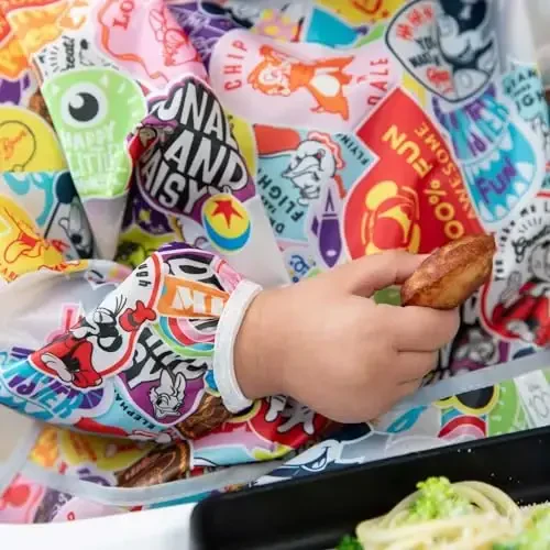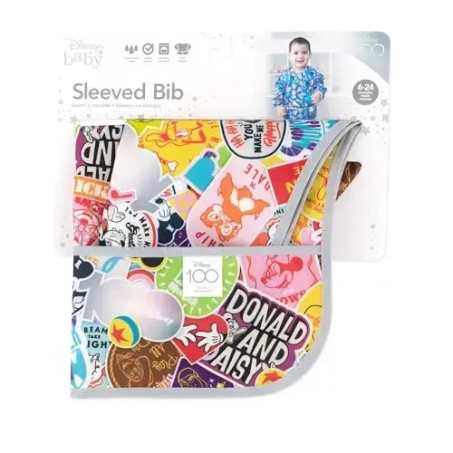 Bumkins sleeved bibs are an ideal solution for protecting little ones' clothes during mealtime or artistic activities. Made from lightweight, waterproof, stain-resistant fabric, these bibs will be a favorite for both parents and children. Designed for babies and toddlers aged 6-24 months, these handy bibs cover a large portion of clothing with their long sleeves, keeping them clean. This special design from the Bumkins Disney 100th Anniversary Collection brings the magic of Disney to the dining table.Product DescriptionThe Bumkins Disney Sleeved Bib is designed to make mealtimes and creative play moments more enjoyable and less stressful for little ones. This cute and practical bib is an ideal choice for babies and toddlers aged 6 to 24 months. Thanks to its soft, lightweight, and waterproof fabric, your child's clothes are safely protected from food, paints, and other stains. The long-sleeved design provides full protection by covering not only the front but also the arms. This way, clothes stay clean even in the most active and messy moments.Bumkins sleeved bibs are not only practical but also fun. Specially designed for Disney's 100th Anniversary celebrations, this collection features vibrant and cheerful designs of Mickey Mouse, Minnie Mouse, and other beloved Disney characters. These bibs, adorned with your child's favorite characters, turn mealtimes into an adventure.Bumkins sleeved bibs are extremely easy to clean and can be washed both by hand and in the washing machine. The durable fabric is suitable for repeated use and the colors do not fade. Thanks to the adjustable back ties, the bib fits your child's body perfectly and offers comfortable use. This feature allows you to use the bib for a longer period of time as your child grows.The Bumkins Disney Sleeved Bib is a perfect choice not only for mealtime but also for painting, playing with playdough, and other creative activities. You can be sure that your child's clothes will stay clean while letting their imagination run wild.An indispensable aid for parents, Bumkins sleeved bibs stand out with their practicality, fun, and durability. If you are looking for a reliable and cute protection for your baby or toddler, the Bumkins Disney Sleeved Bib is for you!Product Features* Suitable for babies and toddlers aged 6-24 months.* Made of waterproof and stain-resistant fabric.* Long-sleeved design provides full protection of clothes.* Disney's 100th Anniversary Collection special design.* Easy to clean, hand and machine washable.* Adjustable back ties provide a comfortable and secure fit.* Lightweight and comfortable fabric.* Ideal for mealtime and creative activities.Additional InformationBumkins sleeved bibs are PVC, BPA, Vinyl, Phthalate, and Lead-free. Made of safe materials. To ensure the product lasts longer, follow the washing instructions. It is recommended to wash and dry at low temperatures to preserve the vibrancy of the patterns.