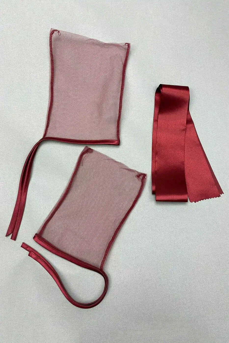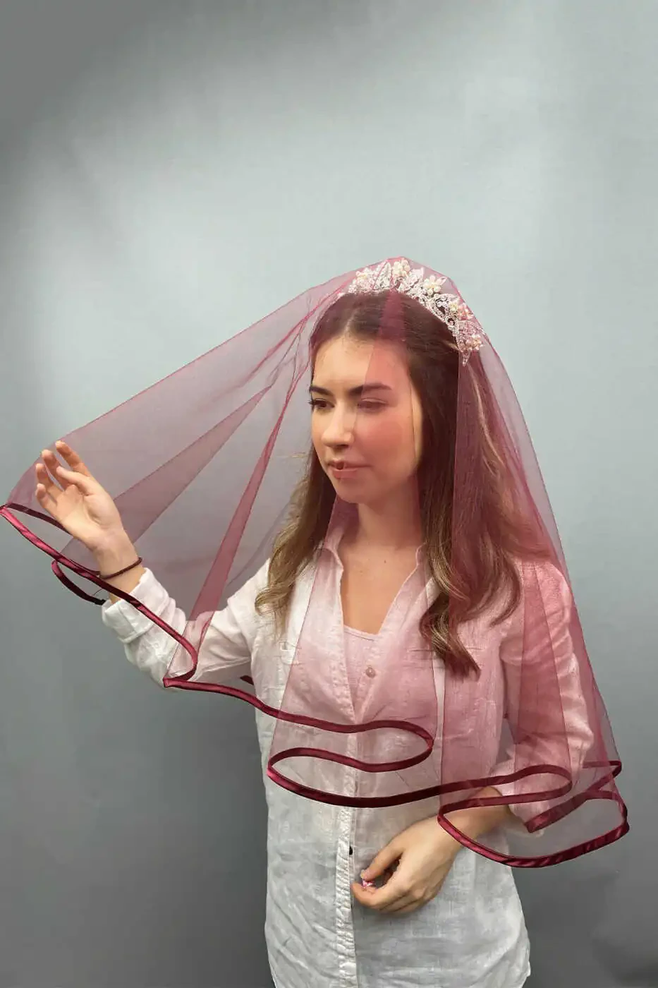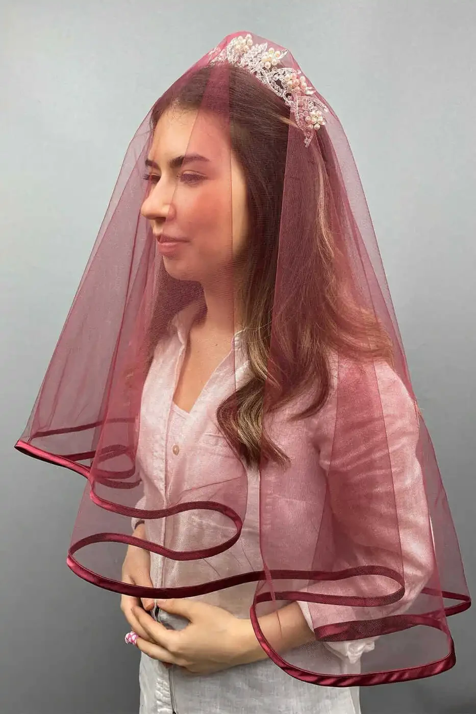 Maxsus kuningizni to'ldiradigan nafislik: Bordo chekli to'y fatasining yuzga yopiladigan qismi. Naffi bordo rang va nozik dantelining uyg'unligi to'y libosingizning nafisligini ta'kidlaydi. Uni yuzga yopiladigan qism sifatida yoki boshga taqishingiz mumkin.