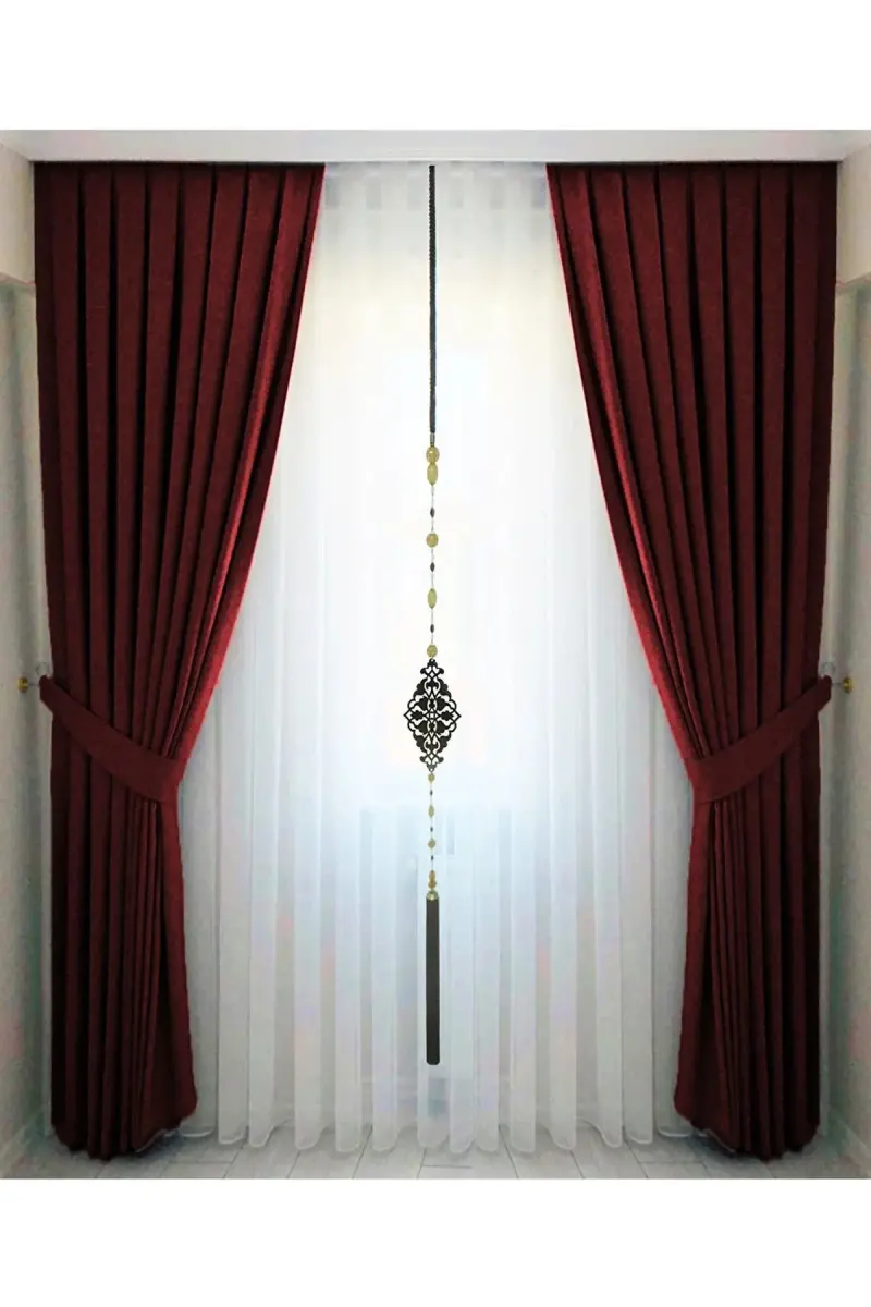 Add a warm and inviting touch to your home with the Burgundy Pleated Velvety Curtain. Produced with high-quality material and careful workmanship, this single panel curtain will bring elegance and style to your spaces. Combining the nobility of burgundy color with the luxurious feel of velvety texture, this curtain is an ideal choice especially for your living spaces such as living room, sitting room or bedroom. The curtain will instantly change the atmosphere of your room and will be a complementary element of your decoration. Thanks to its honeycomb textured fabric, it offers a unique look while helping you to keep sunlight under control with its 60% blackout feature. In this way, it can be used both as a decorative element and as a functional sunshade. Our product is offered with Beyaz Dokuma assurance, and quality and customer satisfaction are prioritized. Since there may be tone differences in orders placed at different times, it is important to collect the products ordered for the same room in a single order. If you want to use both the right and left sides for a single window, you need to order 2 pieces. If your window size is approximately 3 meters, 80 cm or 90 cm width will be ideal for each wing. Please determine the correct length by measuring the distance between the ceiling and the floor. Large curtains are suitable for both decorative purposes and as sunshades. Thanks to its legal pleated stitching, the curtain is sent ready for use and can be easily used for the right or left side. The product is sent with a tie strap. This curtain, which offers elegance and usability together, will enrich the atmosphere of your home and increase your comfort.