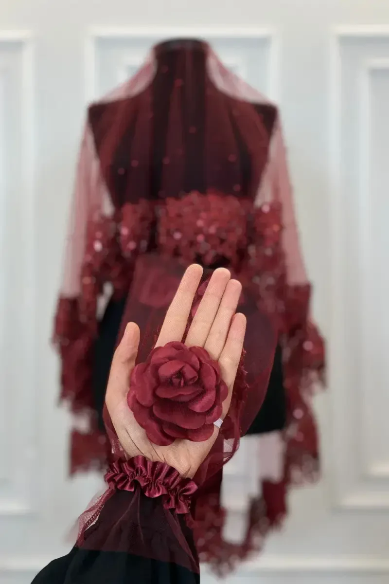 The Burgundy Vip Bridal Veil Set, a Daisy Guipure Beaded Sequin Pearl Henna Veil Set, is a unique option to complete your elegance and style on your most special days. Presented by ZEYMERADE quality, this 6-piece set will accompany you on all your special moments, from your henna night to your wedding, from your engagement to your bachelorette party. The magnificence of the bridal veil, the elegance of the sash, the modern touch of the gloves, and the romance of the hand roses come together to create an unforgettable look. Decorated with daisy guipure details, beads, sequins, and pearls, this set reflects the nobility of the burgundy color and features careful workmanship in every detail. This special set is a perfect choice not only for brides but also for bridesmaids and groomsmen. This set, which will be indispensable for your dowry preparations, will become one of the most valuable pieces of your trousseau. This veil set, which combines traditional motifs with modern lines on your henna night, helps you create unforgettable memories. You can use this set at your special days such as weddings and engagements, and it will perfectly match your wedding dress and highlight your elegance. The Burgundy Vip Bridal Veil Set is not just an accessory, but also expresses a meaning. By integrating with your wedding dress, it multiplies the magic and meaning of that day. On your special days such as henna night, wedding, engagement, betrothal, or bachelorette party, you will feel more special and beautiful with this set in these happy moments you will spend with your loved ones. By visiting our ZEYMERADE store, you can browse our stylish and high-quality products for circumcision supplies, accessories, and other special occasions. This unique set is an ideal choice for women who combine both traditional and modern styles. This set, which dazzles with its daisy guipure, beaded, sequined, and pearl details, represents nobility and elegance with its burgundy color. Don't miss this set to leave an unforgettable mark on your special days and feel like a princess. This product, offered with ZEYMERADE quality, will accompany you in your most special moments and will be a memory that you will keep for a lifetime.