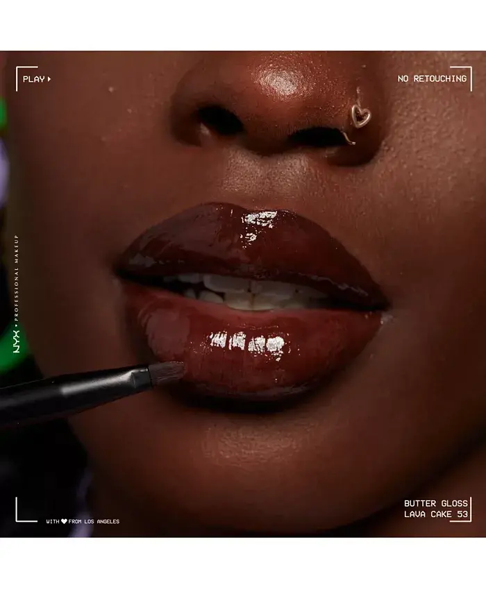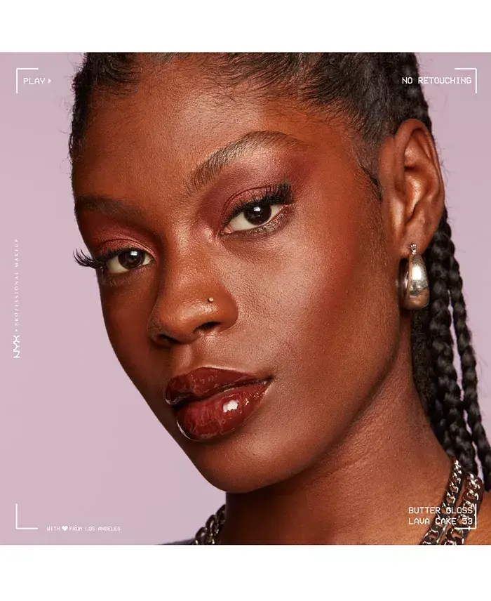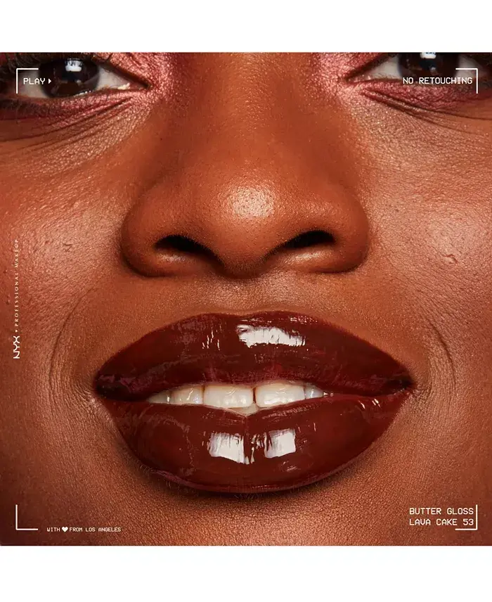 Craving a dollop of silky-smooth lip gloss? Help yourself to any of NYX Professional Makeup's Butter Glosses available in many scrumptious colors! Add a little more sweetness to your lips with these yummy and decadent shades. Choose from a wide variety of lip colors, featuring unique shade names that are equally as sweet. Each vibrant, glistening lip color offers sheer-to-medium coverage. This long-lasting lip gloss glides on as smooth as butter to leave lips soft, supple and kissable. Your lips will be melting over these fan-fave glosses that always deliver a dash of glistening color. Get full, glossy lips without that sticky sensation. Butter Gloss works to soften and condition lips while giving a hint of color and gloss. Turn up the hydration with this soothing lip moisturizer to make lips look more plump, shimmery and full. Simply swipe, smack and show off your gorgeous glossy lips. It's perfect for every sweet tooth! WHAT IT DOES: Wide variety of vibrant long-lasting lip colors Sheer-to-medium coverage Glides on silky-smooth Softens and conditions lips while giving a hint of color and gloss HOW TO USE: Apply directly to lips with spatula applicator, layering for brighter color payoff Wear over NYX Professional Makeup Butter Lipstick to add a touch of softness and shine America's #1 Lip Gloss Brand L'Oreal calculation based on NielsenQ data for the lip gloss category in USxAOC Market. L52W thru 12.30.23