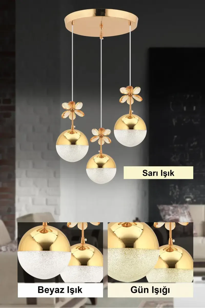 The Butterfly 3-Piece Gold 3-Color Tiered Pendant LED Crystal Stone Chandelier is ideal for adding elegance and grace to living areas such as living rooms, dining rooms, bedrooms, and hallways. It can also be preferred in commercial areas such as hotels, restaurants and cafes.