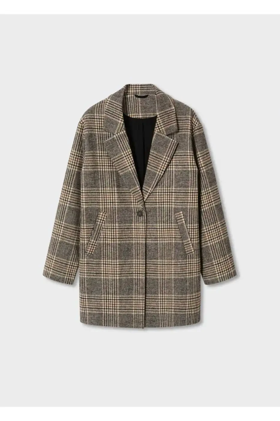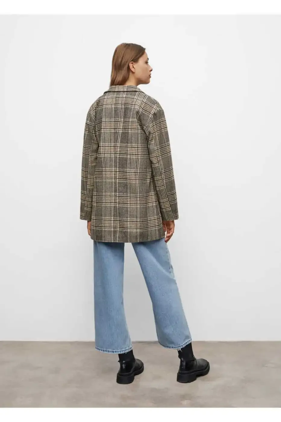 coat, straight cut, herringbone, lined, long sleeve, Trendyol