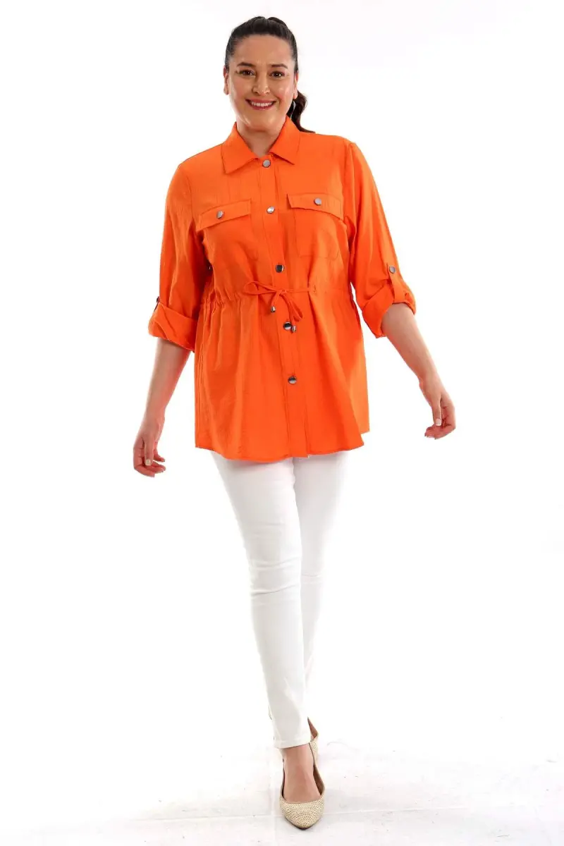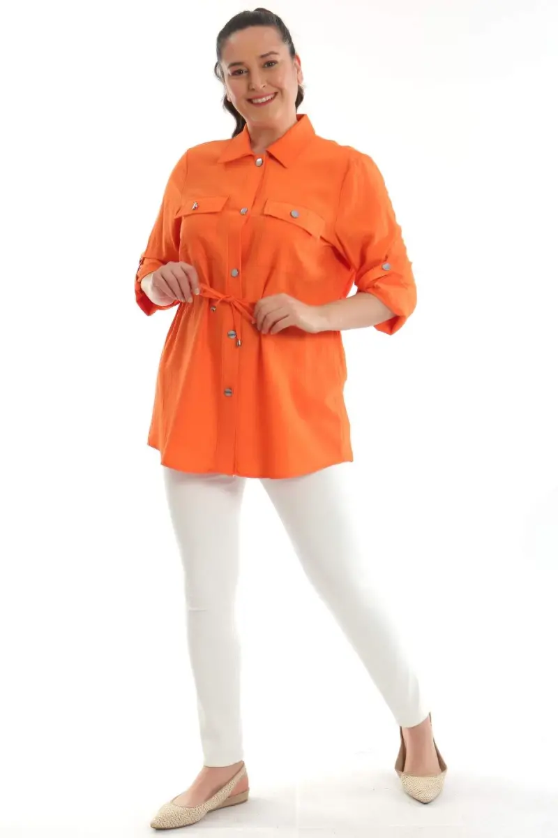 Büyük Beden Belden Bağcıklı Cepli Oranj Ceket Ürün Özellikleri: Rahat kalıbı ile kullanımı kolay Beli Bağcık Detayı Erkek yaka detayı ile şık bir görünüm Kol apolet ve düğme detaylı Kalça altı boy Ürün Açıklaması: Büyük Beden Belden Bağcıklı Cepli Oranj Ceket, klasik kesimi erkek yaka detayı ve dokusu ile maskülen tavrı vurgulamanıza yardımcı oluyor. Ceket modelinin kol apolet ve düğme detayları çarpıcı bir görünüm yaratıyor. Renk: Oranj Malzeme: %87 Vizkoz-%13 Poliester Manken Ölçüleri: Omuz: 47 cm. - Göğüs: 97 cm. - Basen: 105cm - Bel: 80 cm. - Boy: 1,80 cm. Ürün boyu 75 cm. 'dir. Model Bedeni: 44