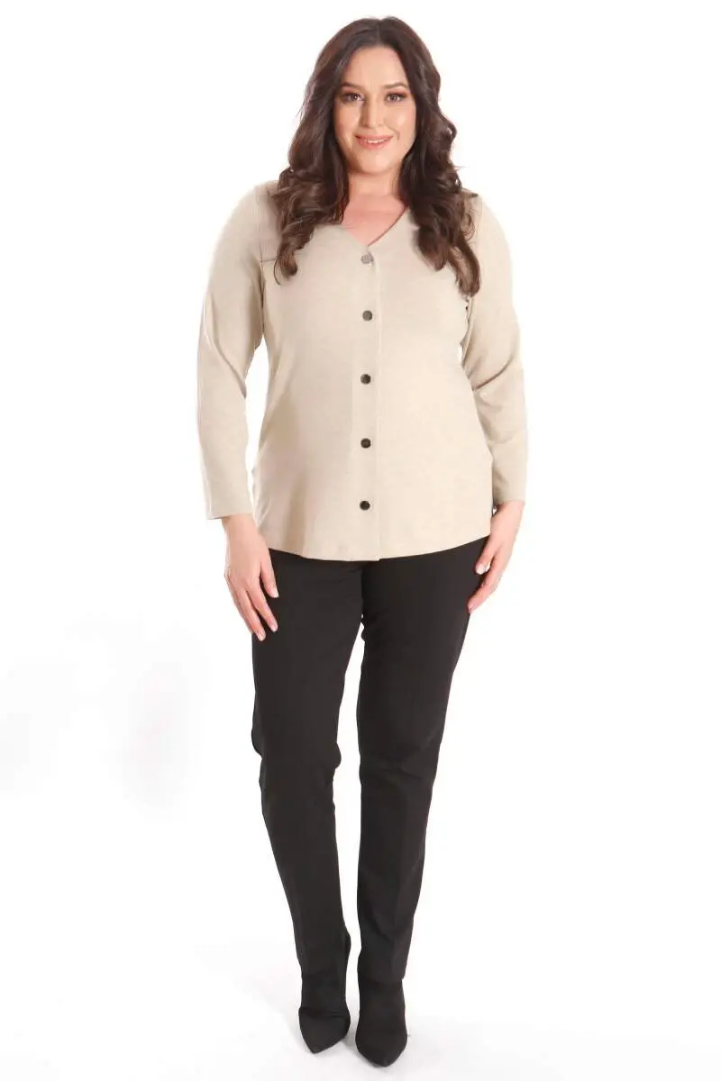 Büyük Beden Çıt Çıt Düğmeli Bej HırkaÜrün Özellikleri: Salaş ve rahat bir görünüm Rahat kalıbı ile konforlu kullanımDüğme detayı ile şık bir görünümDiz üstü boyÜrün Açıklaması: Büyük Beden Çıt Çıt Düğmeli Bej Hırka, tasarımda kullandığı yumuşak doku ile uzun süreli kullanımda konfor sunuyor. Kıyafetlerinizi ve şıklığınızı olumsuz hava şartlarında korurken aynı zamanda tamamlayan özel parçalardan birisi olan hırka modeli sahip olduğu rahat kalıbı ile şık bir görünüm sunuyor.Renk: SiyaModazonealzeme: %4 ELASTAN - %63 POLYESTER - %33 VİSKOZManken Ölçüleri: Omuz: 47 cm. - Göğüs: 97 cm. - Basen: 105cm - Bel: 80 cm. - Boy: 1,80 cm. Ürün boyu 78 cm. 'dir.Model Bedeni: 44